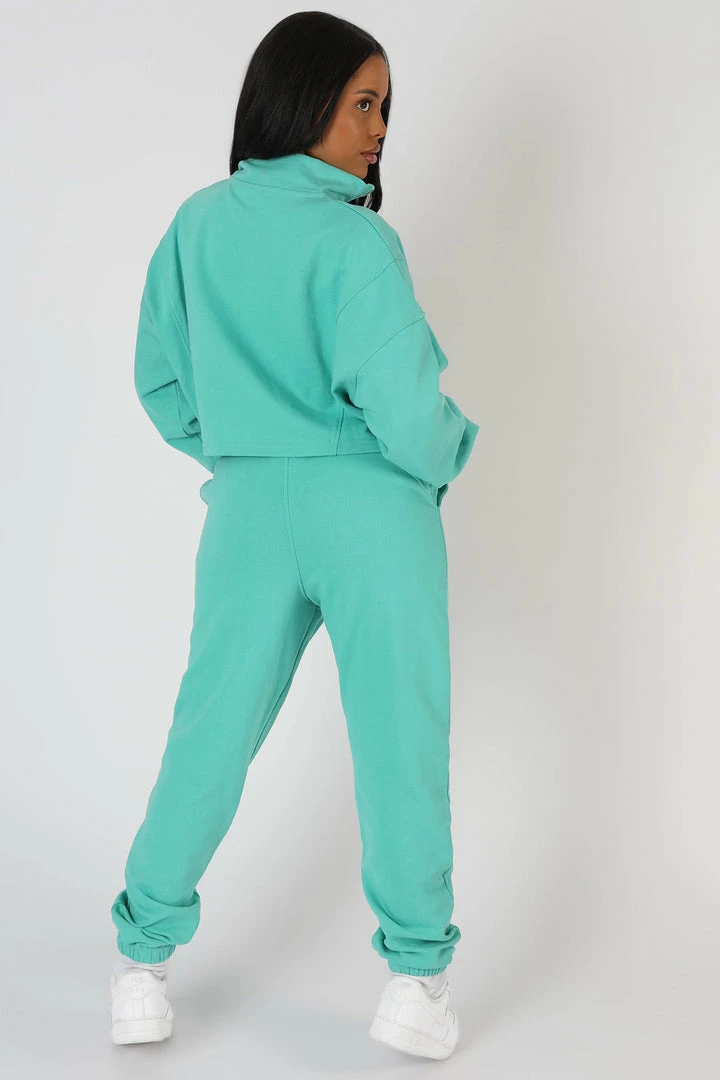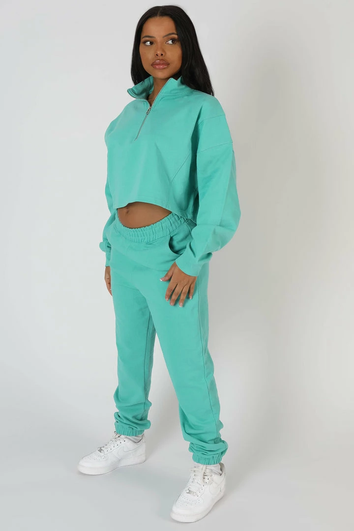 OVERSIZED FIT HIGH WAISTED 90S STYLE JOGGERS IN PEPPERMINT BLUE WITH CUFFED HEMS.