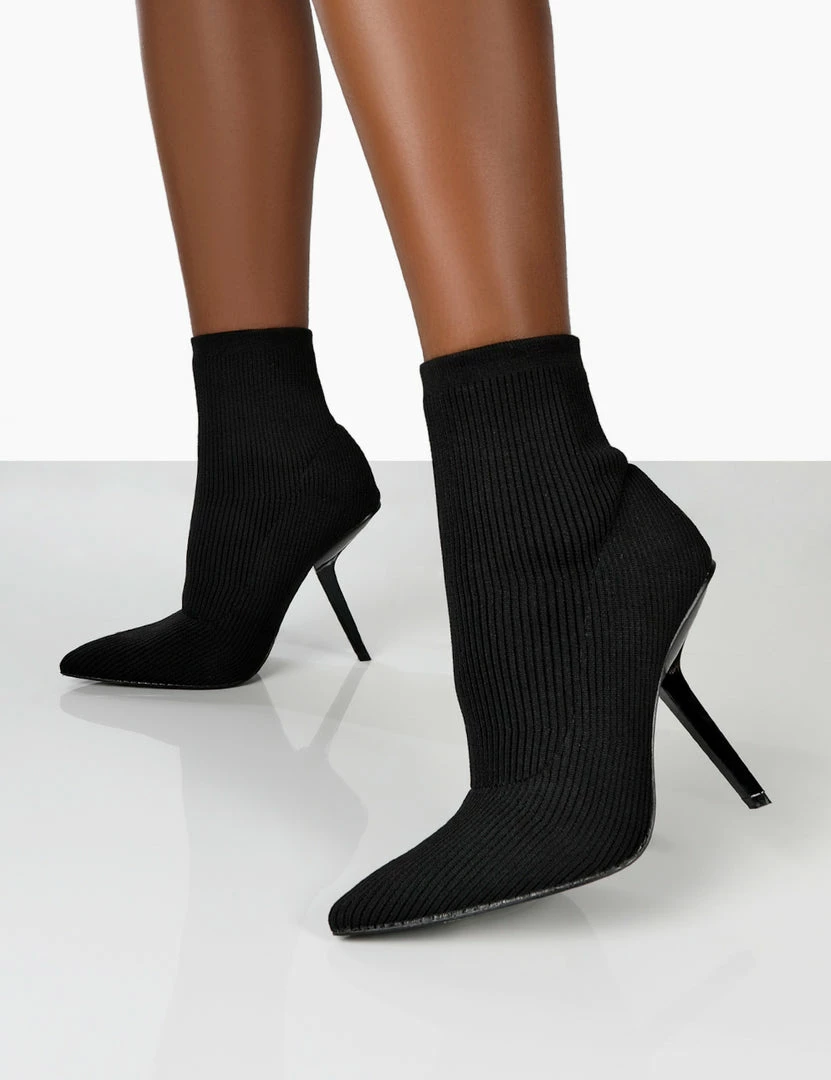 Turn up the HEAT with Chantelle black, a super cute pair of pointed toe, stiletto heel sock boots guaranteed to take you from day to night in style. These glam boots will enhance your look and guarantee some Insta worthy pics. What’s not to love? We’re styling these womens ankle boots with a little black dress and a trench coat for the ultimate out out look. Add Chantelle to your shoedrobe today…