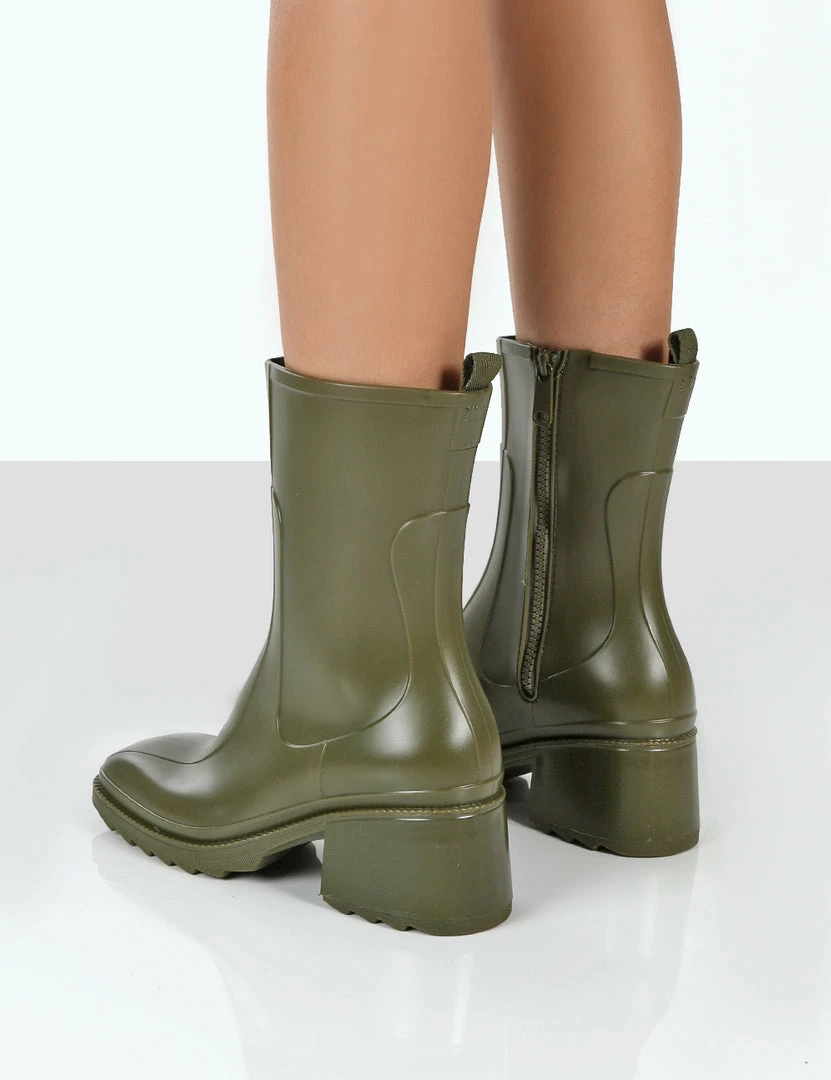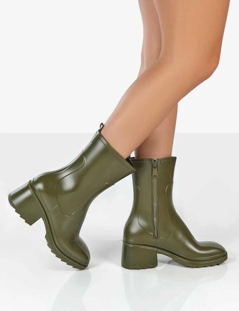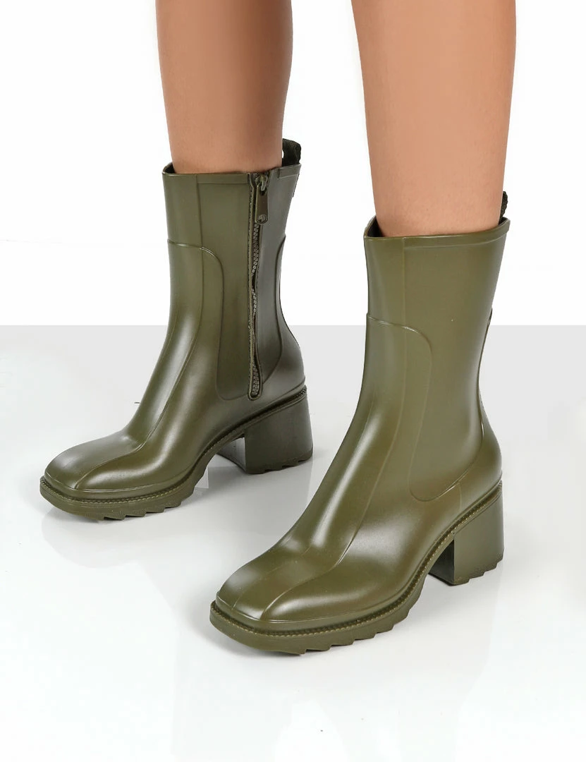 Get ready to step out in style no matter what the weather with Rainyday, a zip up heeled welly boot. These new boots are both practical and super on trend making them an absolute must! Green is the colour of the season baby’ making them the hottest wellies of the year. Why should wellies be boring? Add these new ankle boots to your collection today…