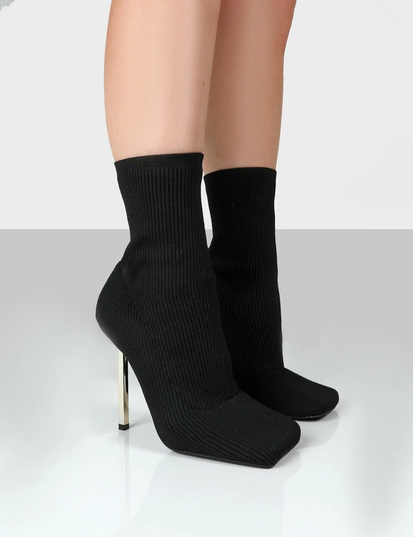 Introducing your new weekend faves- Souffle! A stunning black knit sock boot featuring a statement stiletto heel. These beauties are guaranteed to level up your out out look and will add that extra height we all love. Black is the colour of the season and is an absolute essential for any girl wanting to stay on trend. We’re teaming these ankle boots with a black bodycon co-ord and a mini green handbag. .
