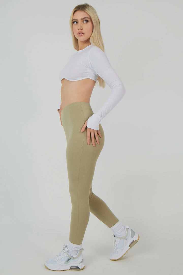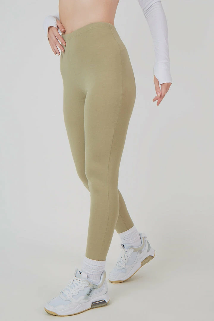High waisted leggings in a light khaki colour.
