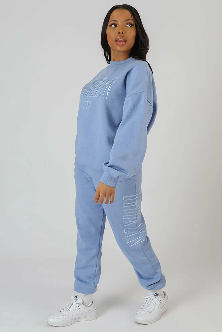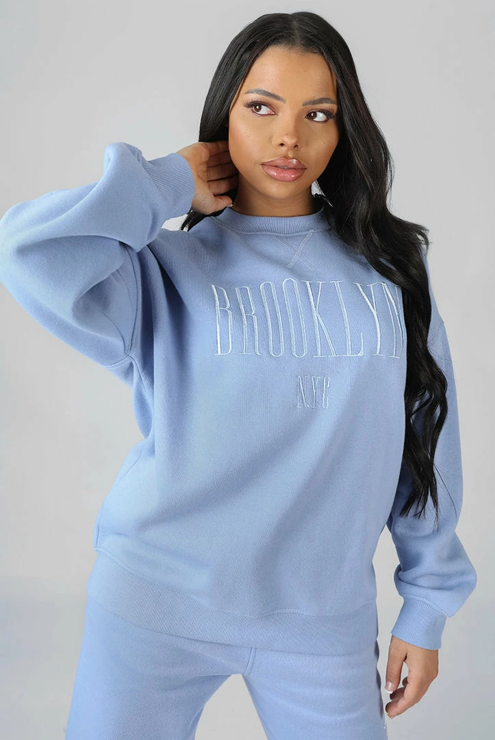AN OVERSIZED FIT SWEATSHIRT IN BLUEBELL WITH BROOKLYN EMBROIDERY