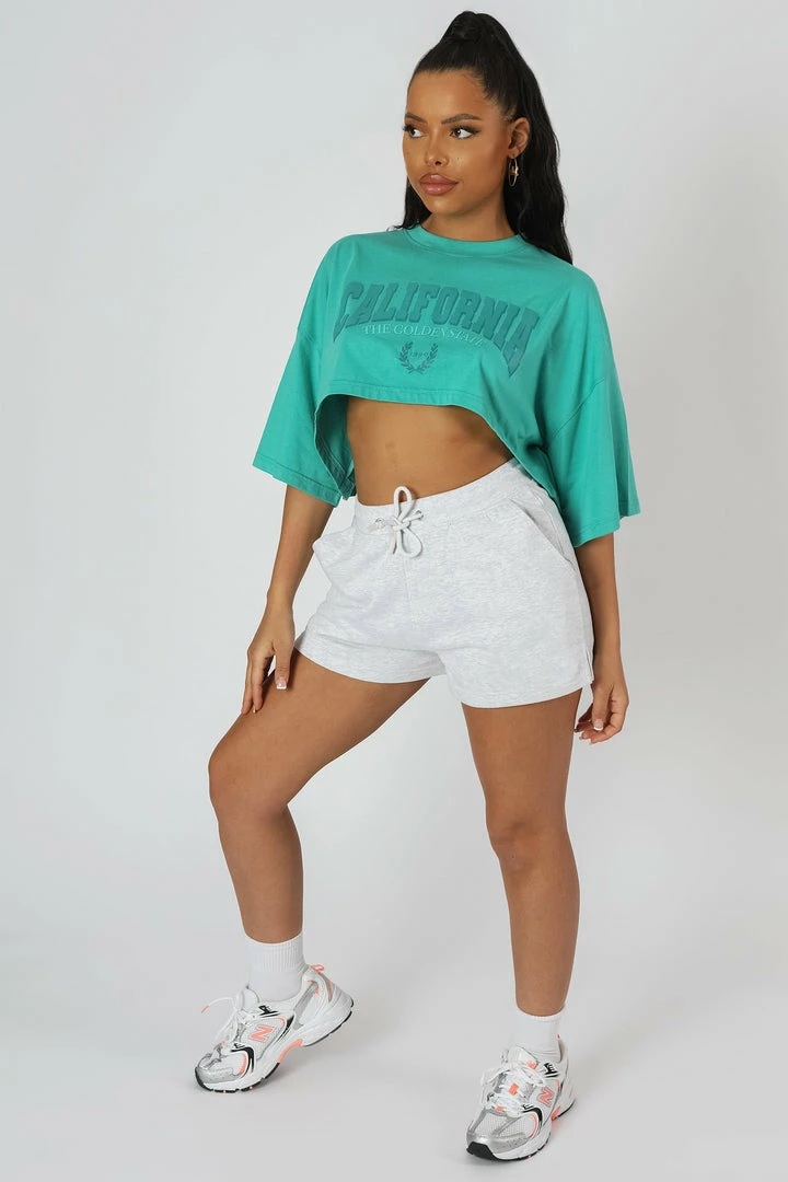 Public Desire UK California Super Crop T-Shirt Turquoise