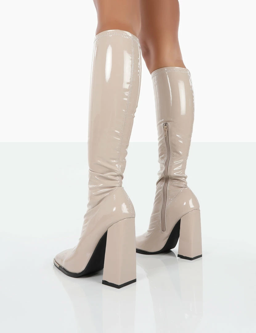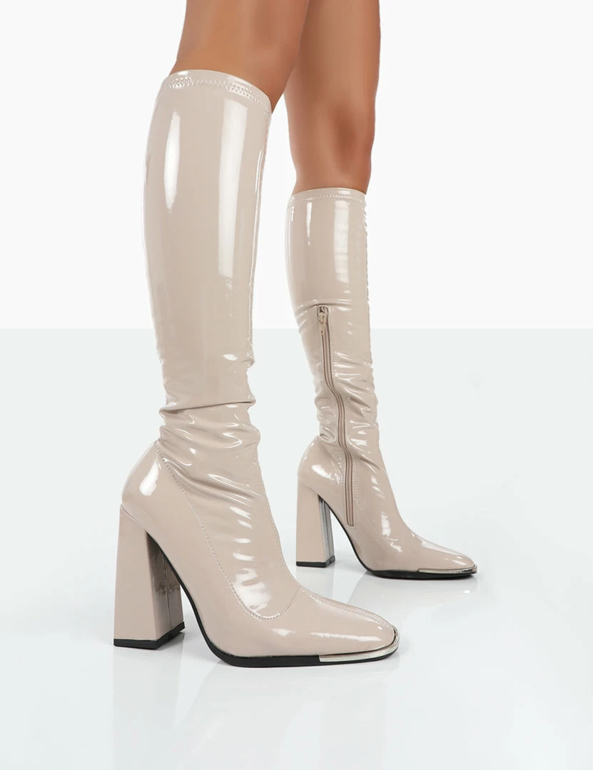 The viral boots that everyone has been talking about…Caryn. These Powerpuff Girls vibey boots are an absolute must for Halloween. This stunning knee high boot features a stylish flared block heel, silver hardware details and a hot AF vinyl material. You’ll be fashion week ready with these booties! Add Caryn to your long boots collection today. These gorgeous boots feature stretchy material making them extremely comfy and easy to wear, what’s not to love?
