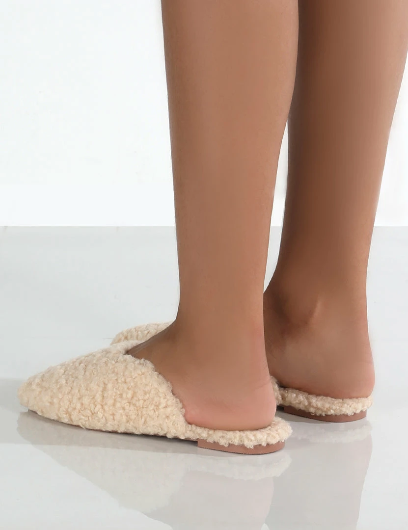 Ciao features a closed toe slip on design and a fluffy teddy material. Your new go to slippers for those lazy days and cozy nights in.