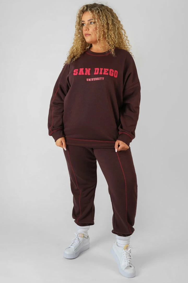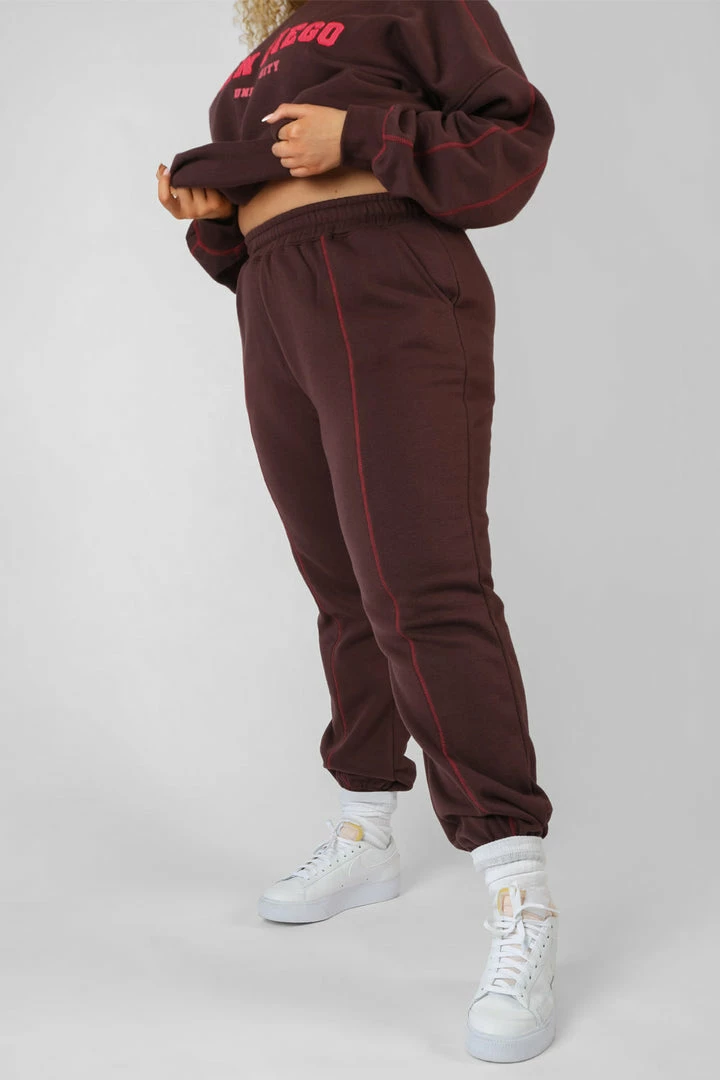 AN OVERSIZED FIT 90S STYLE JOGGER IN AUBERGINE WITH CONSTRAST STITCHING.