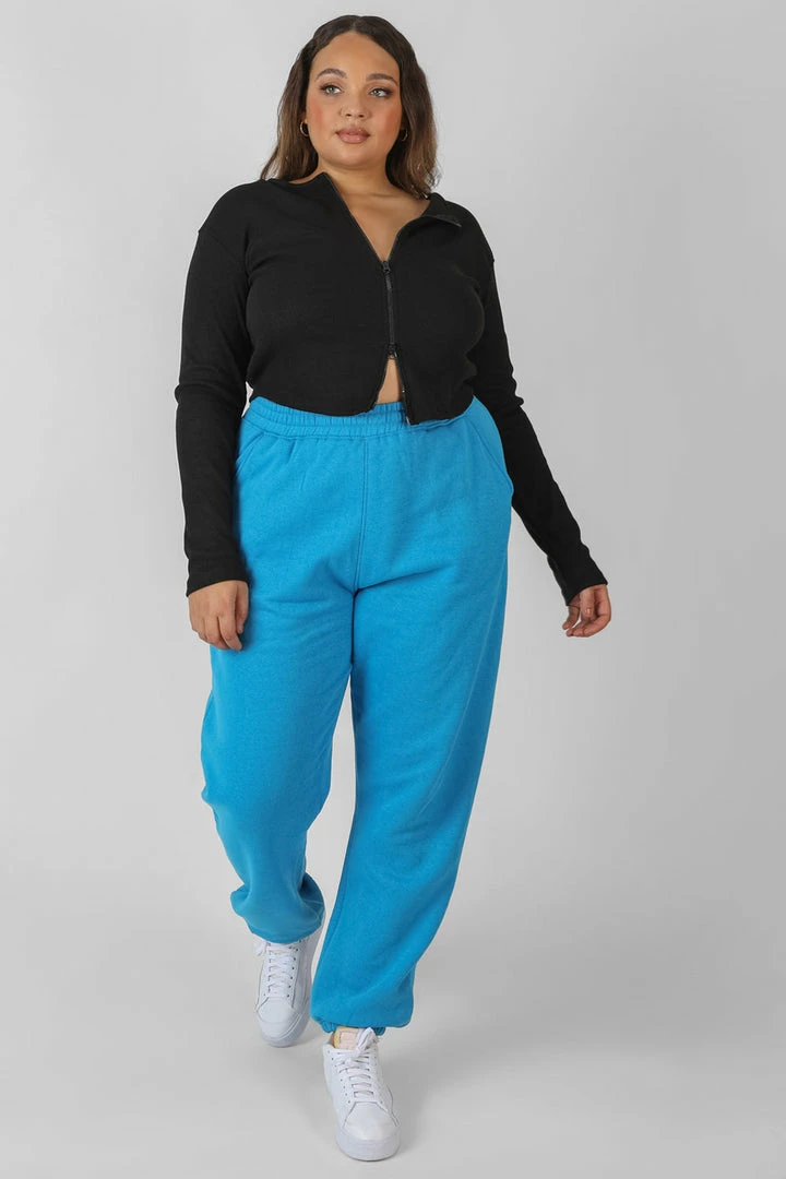A thick ribbed crop top in black featuring a functional double ended zip.