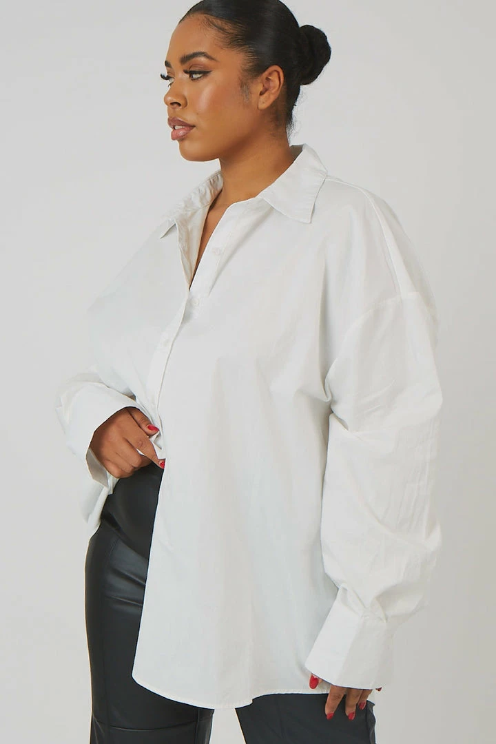 A must have updated basic for this Autumn with this white oversized fit shirt in poplin.