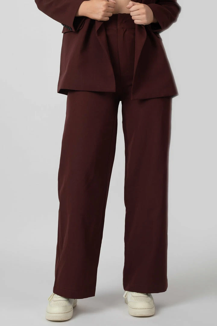 The perfect go-to pair of high waisted, oversized fit trousers in port.