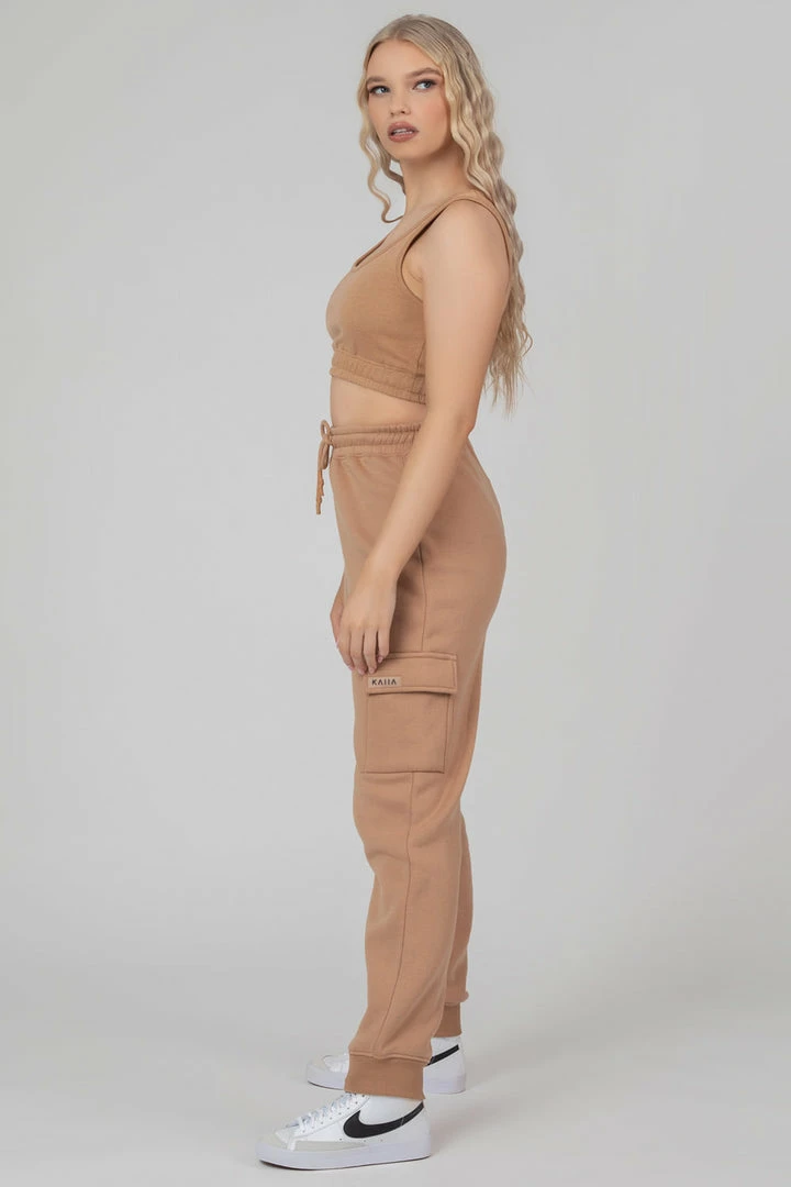 A crop top in nude with a scooped neckline and thick straps and an elasticated waist.
