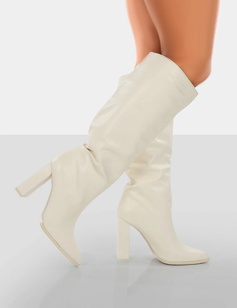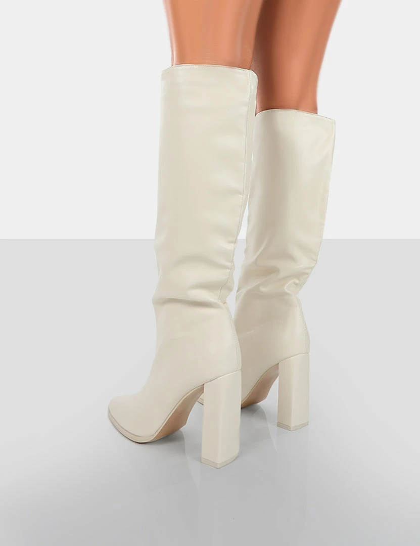 You’ll be walking far away from his toxic traits in these must-have knee high boots. Far away are the perfect pair of heeled boots for any occasion. Add these ecru boots to your basket today…