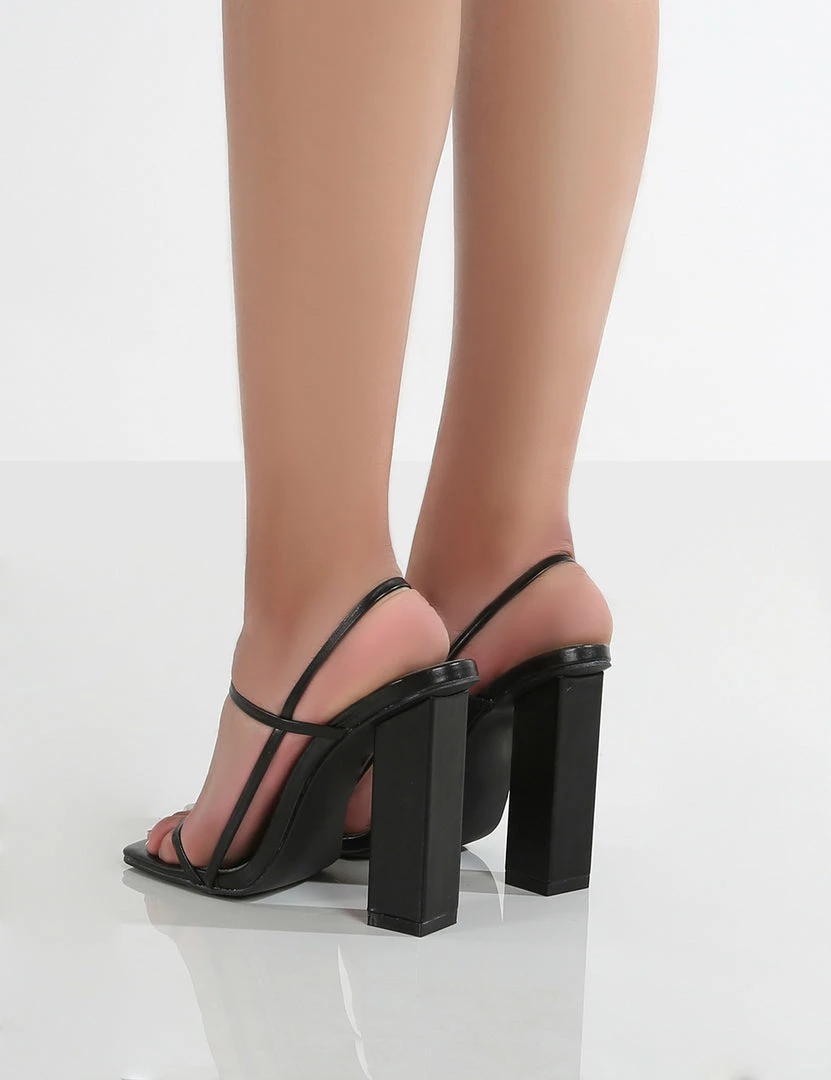 Public Desire UK Lane Wide Fit Black Pu Strappy Mid Block Heeled Sandals
