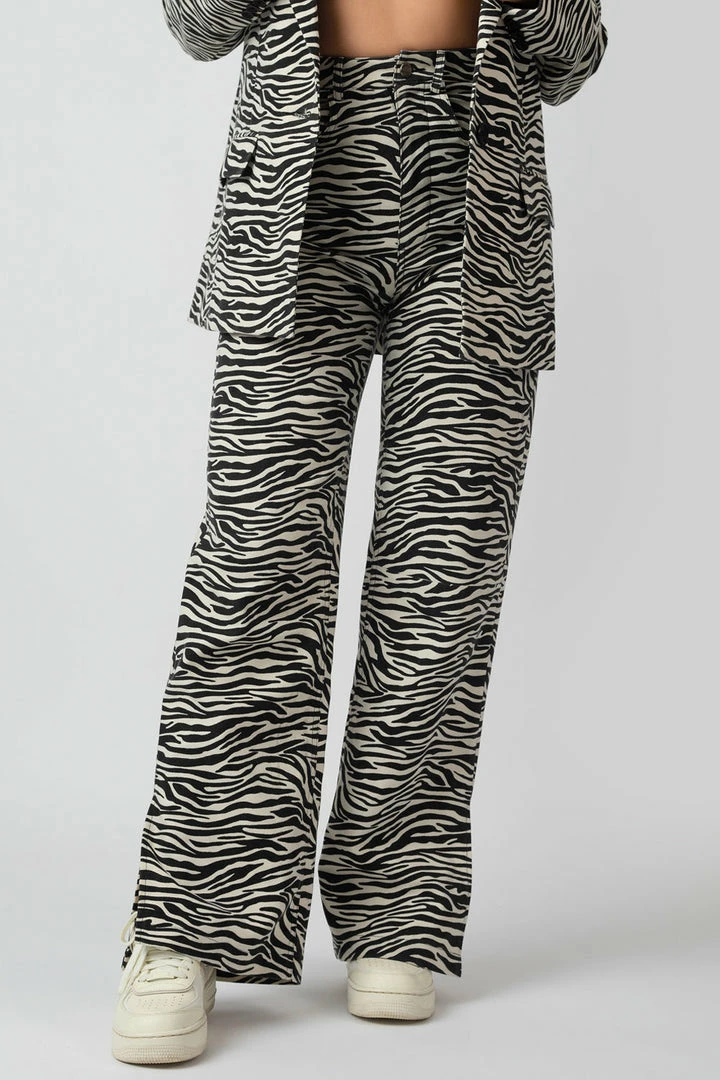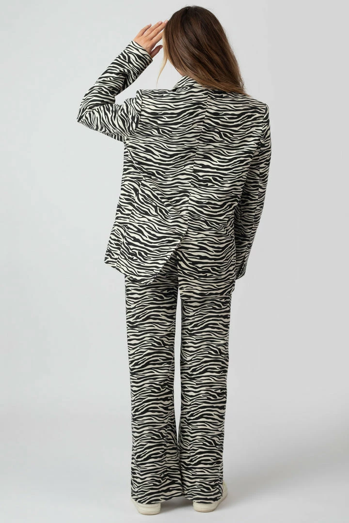 Make a statement with these high waisted, wide leg trousers in a zebra print. Wear with the matching blazer for the ultimate outfit