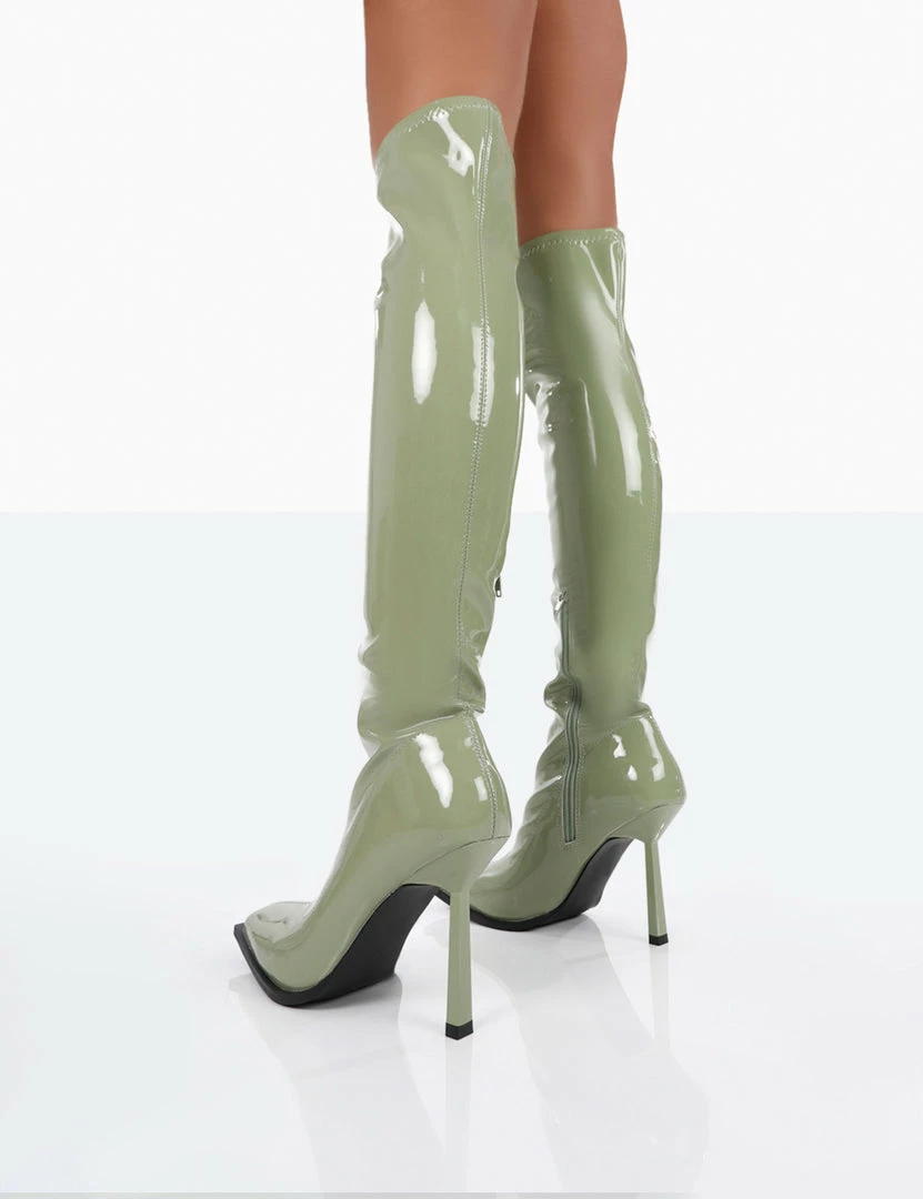 This ones for all our PD babes that love a stiletto heel, introducing Jenine! Featuring a stiletto heel and gorgeous patent material these statement over the knee boots are a hot-girl essential. These green boots weren’t made for walking, more like strutting!! We are obsessing over these new boots and will be styling them with a boxy blazer dress and our fave mini handbag.