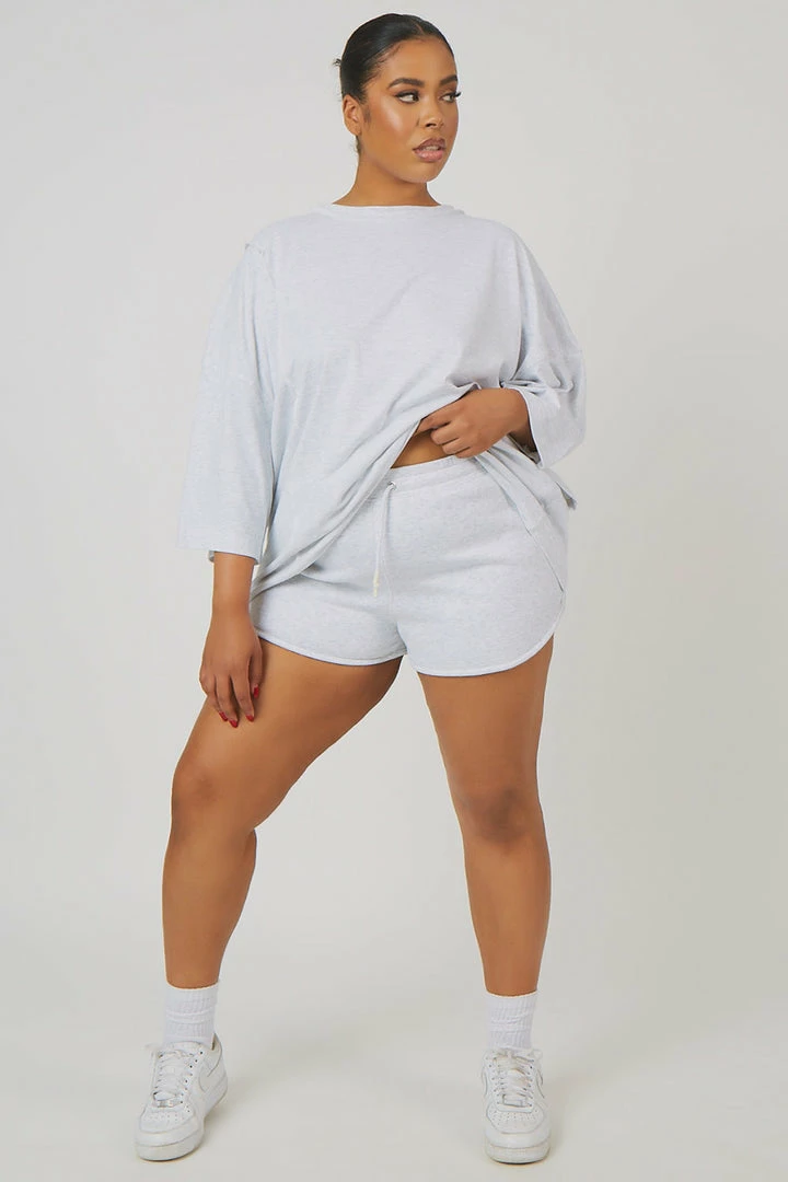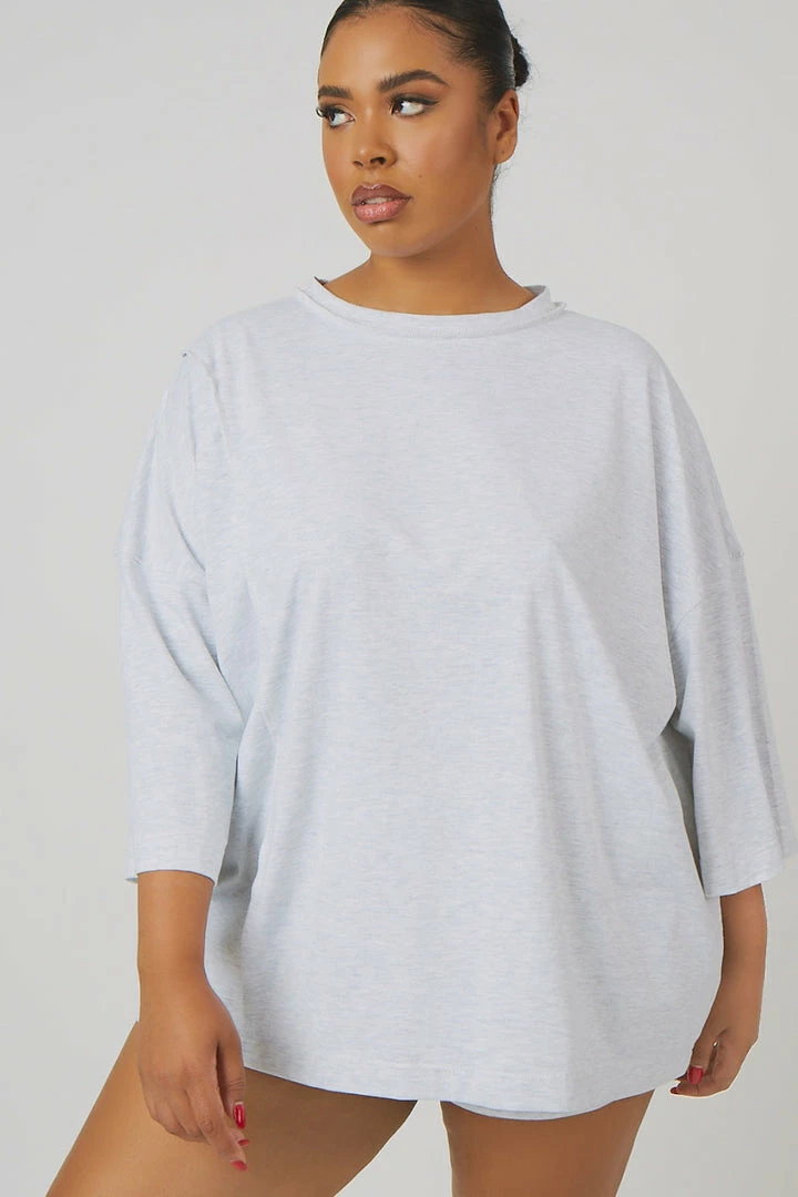 An oversized fit t-shirt with exposed seams in oatmeal marl