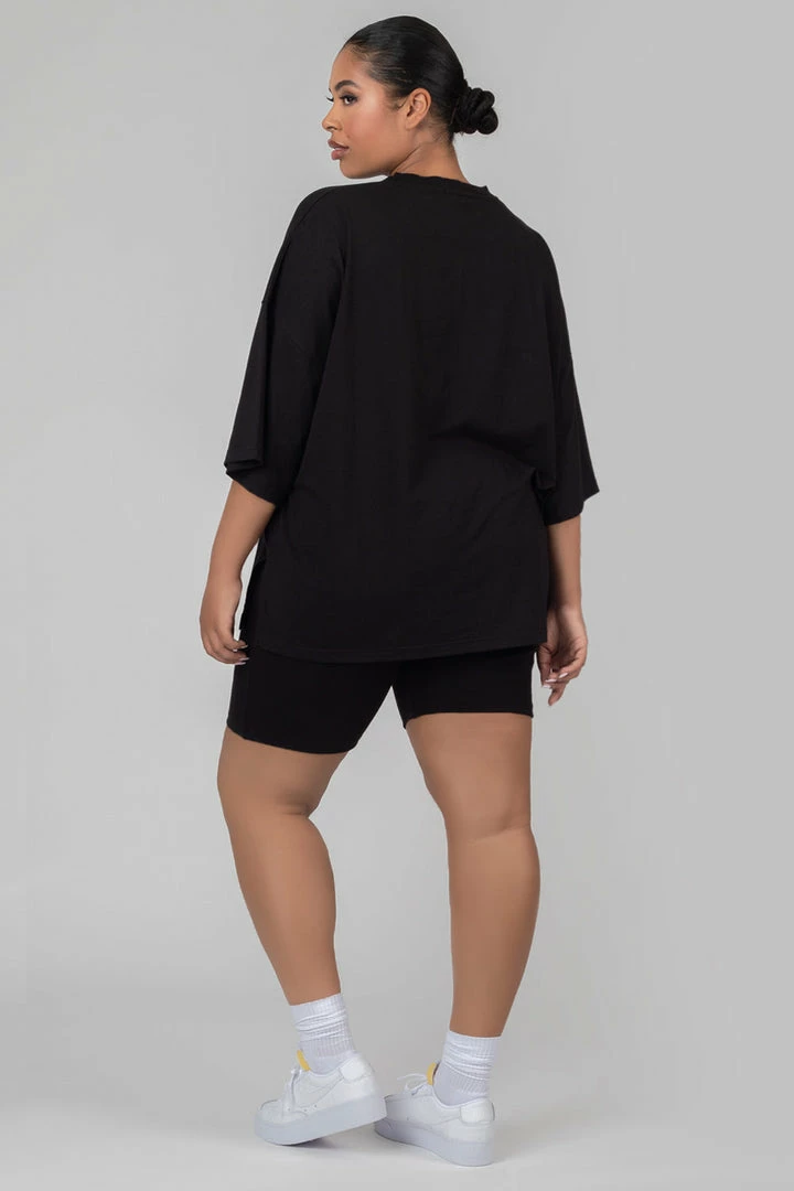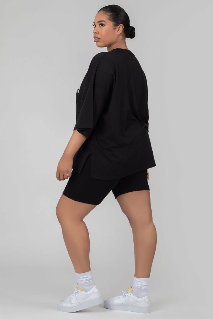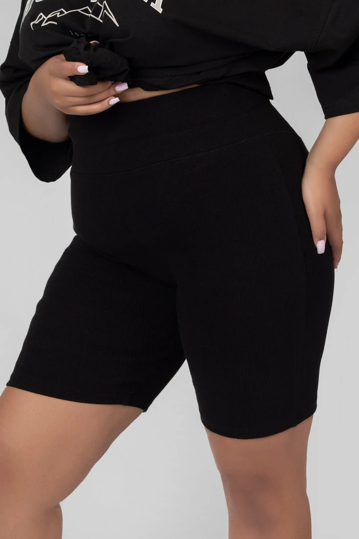 Black jersey high waisted cycling shorts.