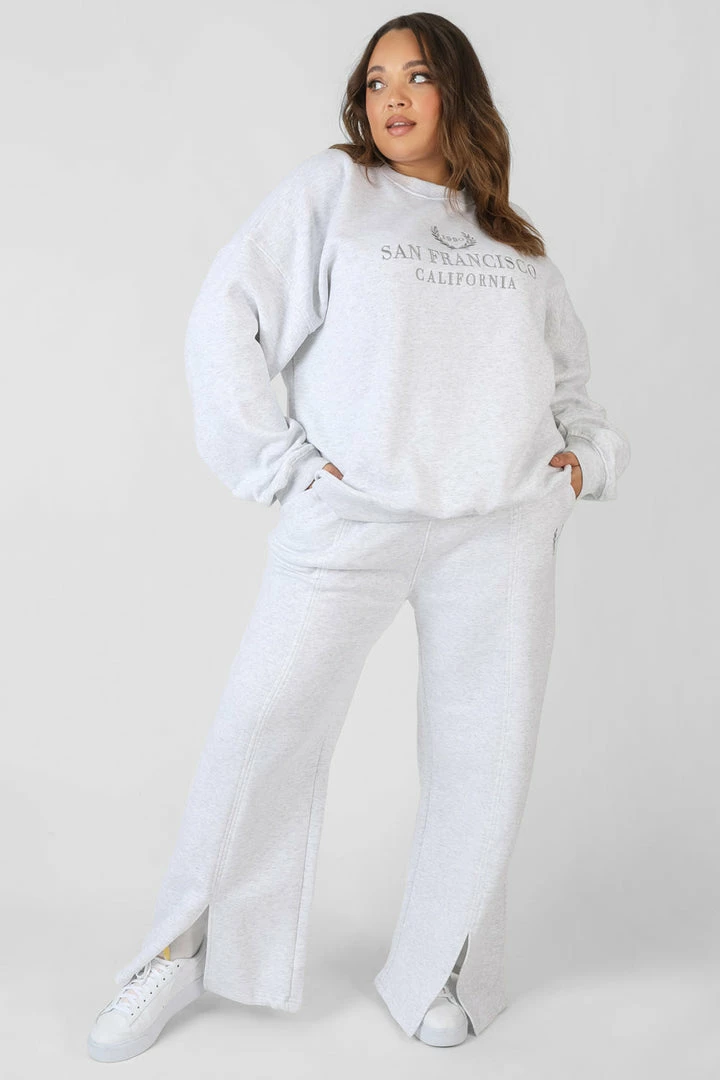 A sweatshirt with an oversized fit in oatmeal marl with embroidered detailing,