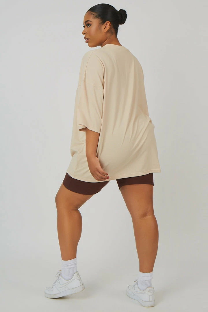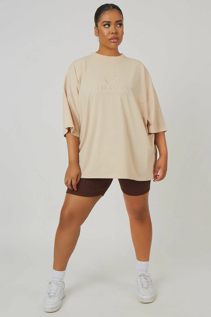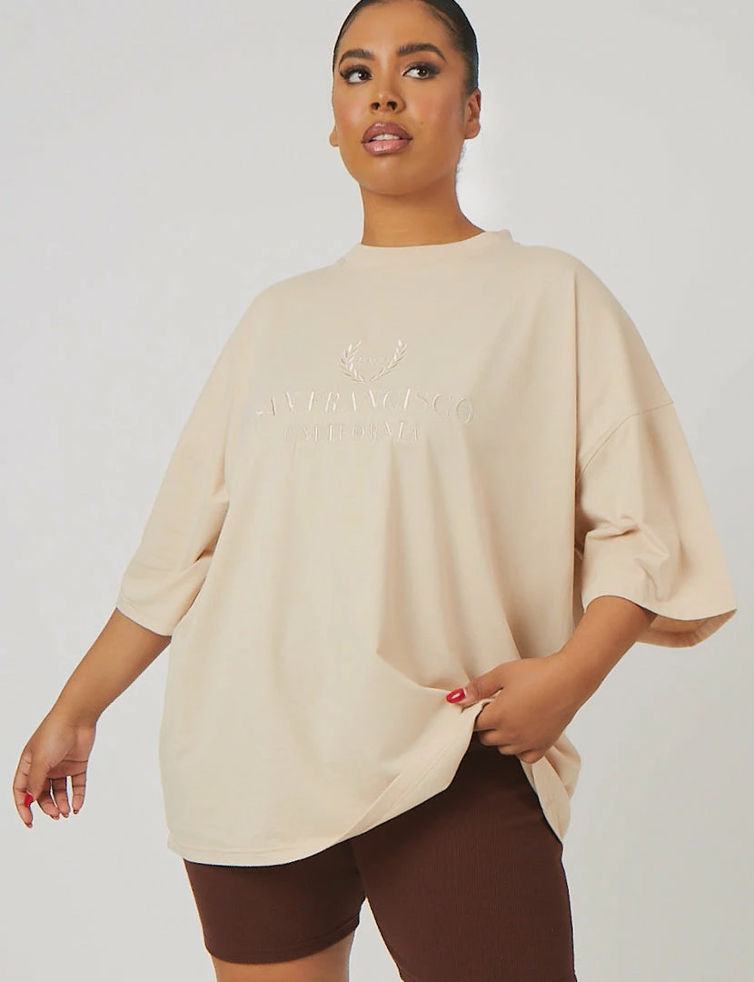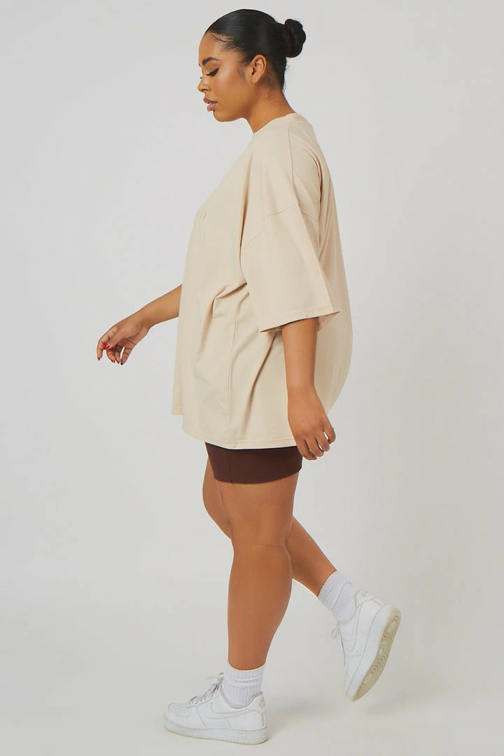 An oversized fit t-shirt in stone with tonal embroidery and short sleeves.