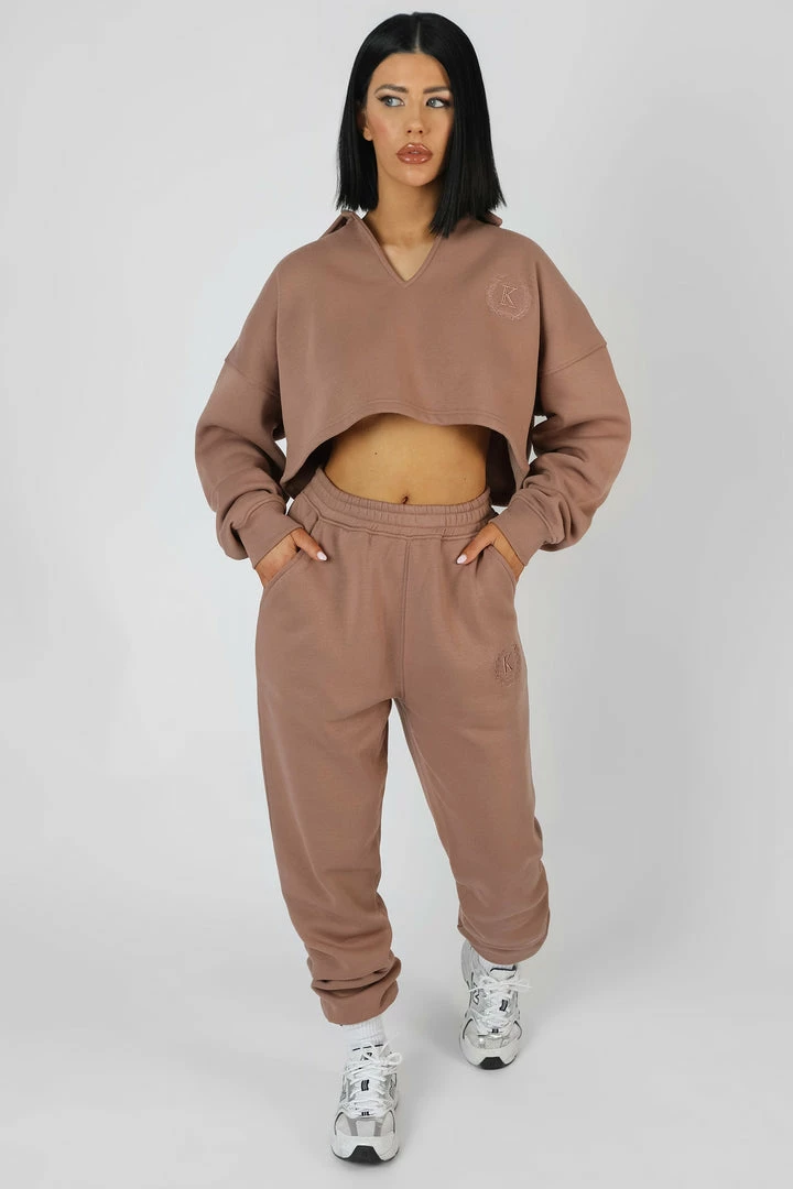 OVERSIZED FIT 90S STYLE JOGGERS IN FRAPPE BROWN. PAIR WITH THE OVERSIZED CROPPED POLO SHIRT FRAPPE FOR THE ULTIMATE SET.