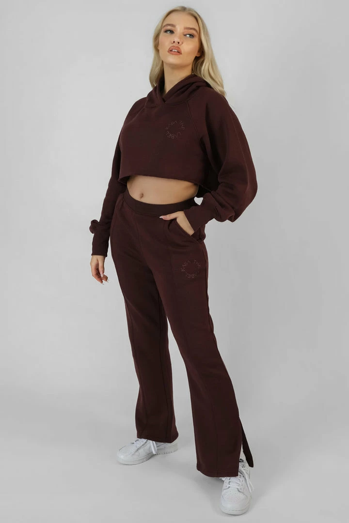 A SUPER CROPPED HOODIE WITH TONAL KAIIA BRANDING EMBROIDERED ON. PAIR WITH THE KAIIA EMBROIDERED SPLIT DETAIL STRAIGHT JOGGERS DARK BROWN FOR THE ULTIMATE SET.