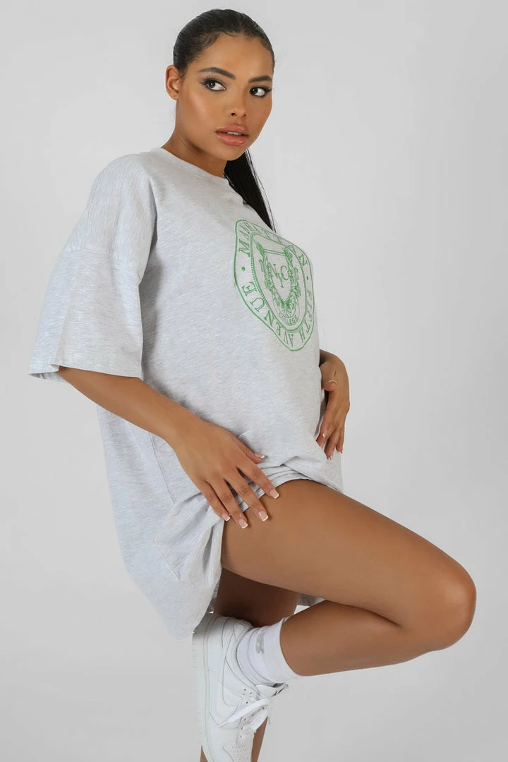 An oversized fit t-shirt dress in oatmeal marl with dress embroidery.