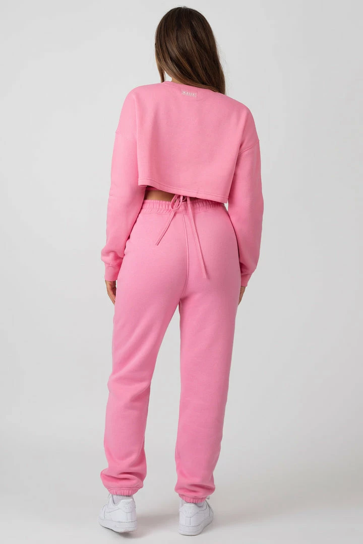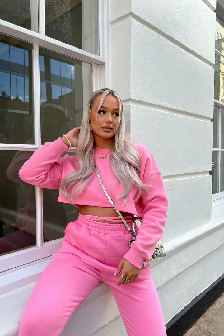 A long sleeve OVERSIZED cropped sweatshirt with a crew neck in pink