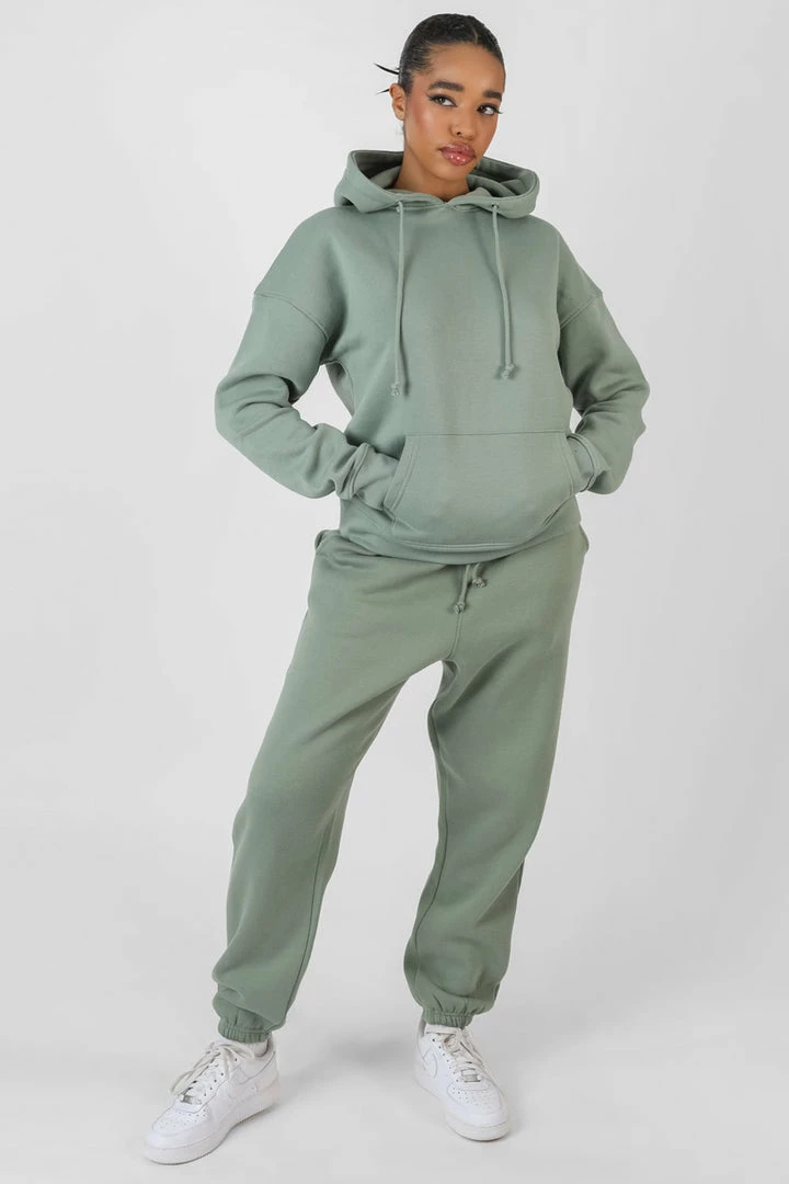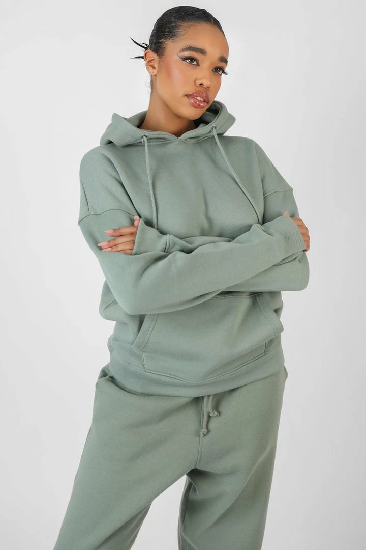 AN OVERSIZED FIT HOODIE IN KHAKI WITH A FRONT POCKET AND DRAWSTRINGS.