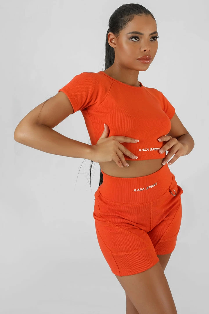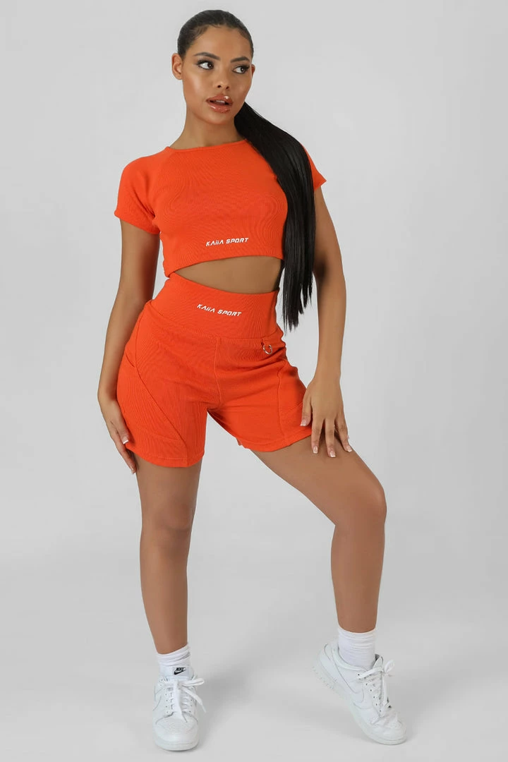 SPORTS STYLES RIBBED CROPPED T-SHIRT IN SUNSET ORANGE WITH CAP SLEEVES