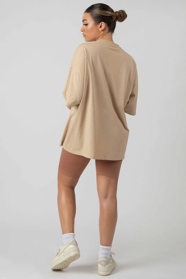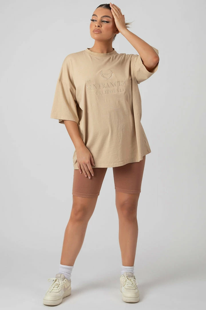 An oversized fit t-shirt in stone with tonal embroidery and short sleeves.