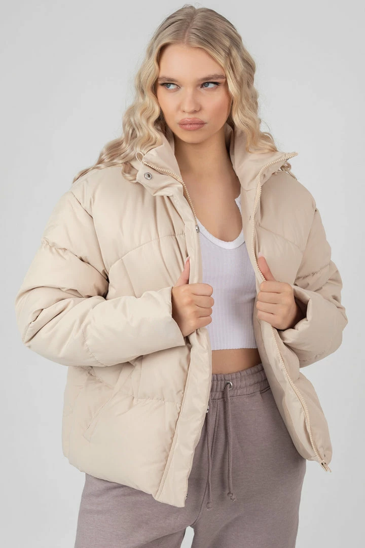 Stay warm this Autumn with the ultimate puffer jacket featuring a high neck and zip fastening in ecru.
