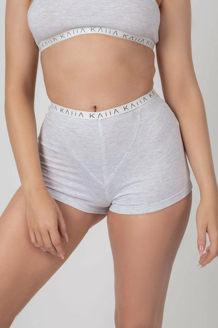 Girl boxers in grey marl with Y shapes seaming and an elastic waist.