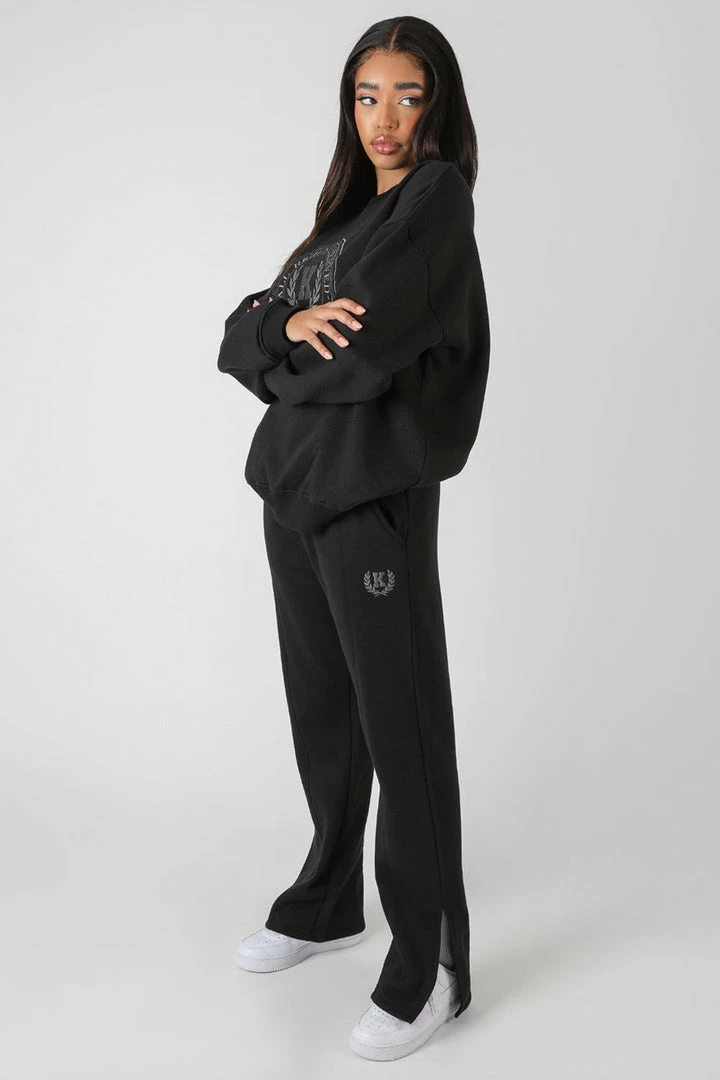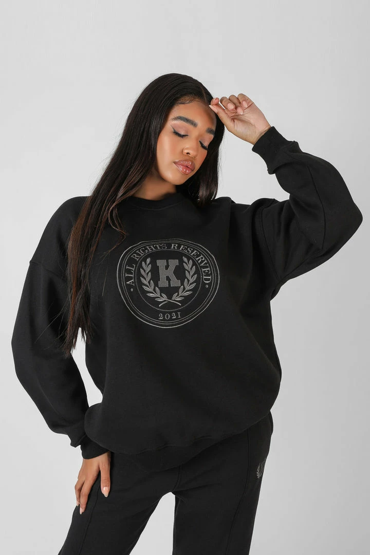 AN OVERSIZED FIT sweatshirt in black with tonal embroidery and an elasticated waist and cuffs.