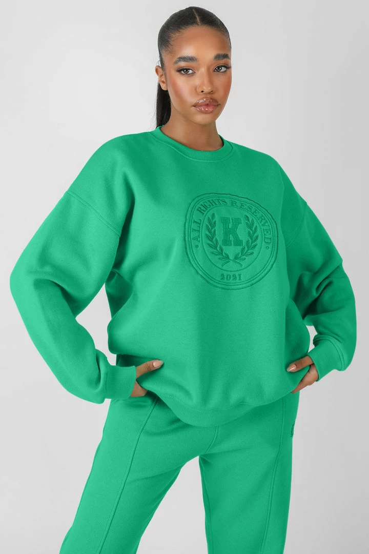AN OVERSIZED FIT sweatshirt in green with tonal embroidery and an elasticated waist and cuffs.