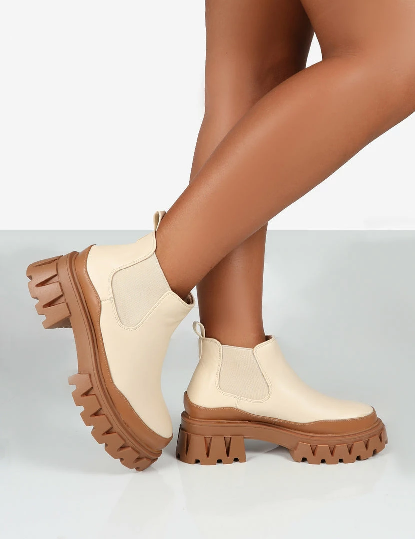 Boots season is officially here boo and that can only mean one thing. It’s time to update your shoedrobe and girl do we have just the boots for you. Get ready to step out in style with Kaya- a super cool and stylish ankle boot featuring a statement chunky sole. You are guaranteed to be the centre of attention in these off white boots. Get ready to feel like a boss babe by styling Kaya with a trench coat. Add these chunky boots to your collection today. .