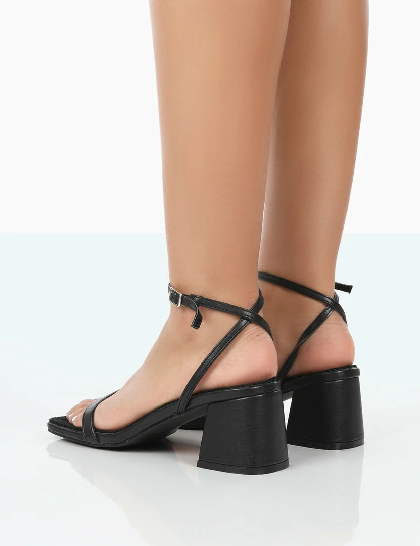Public Desire UK Lane Wide Fit Black Pu Strappy Mid Block Heeled Sandals