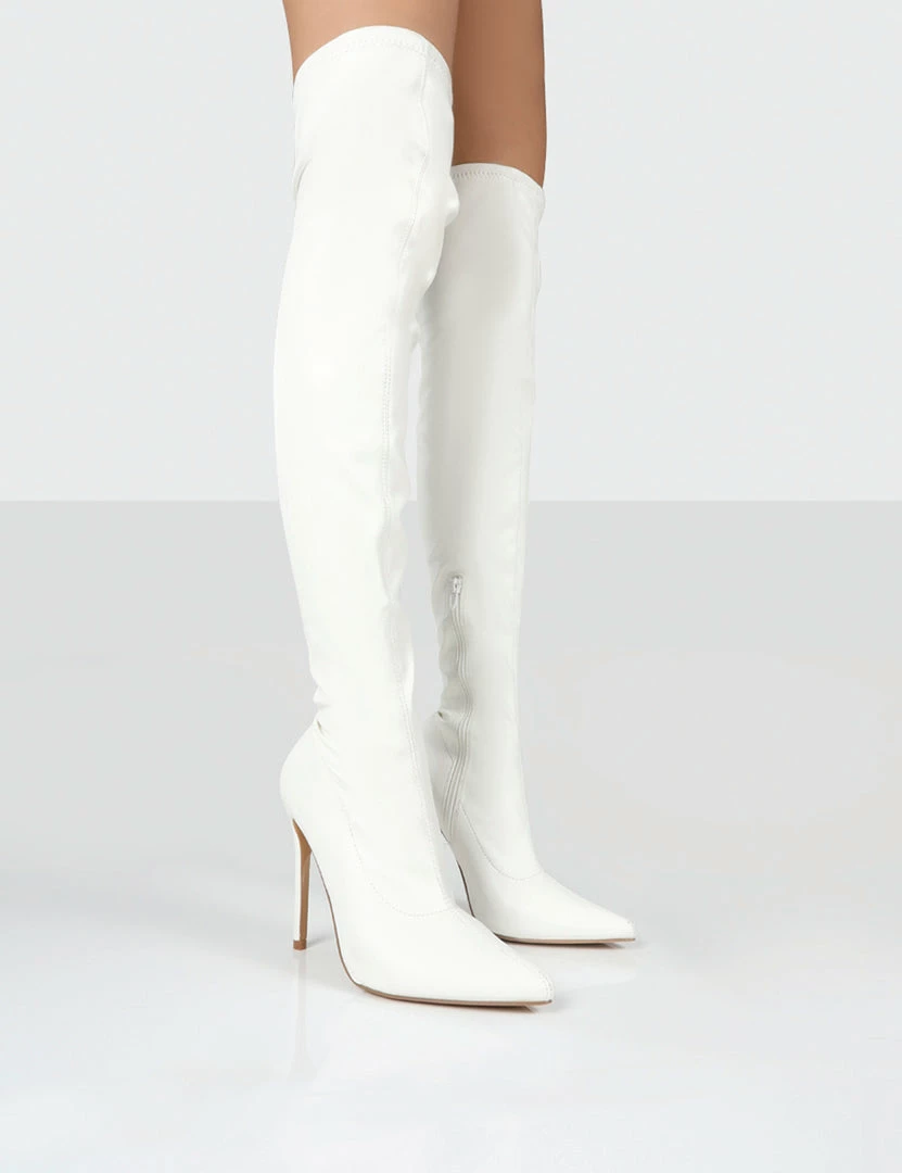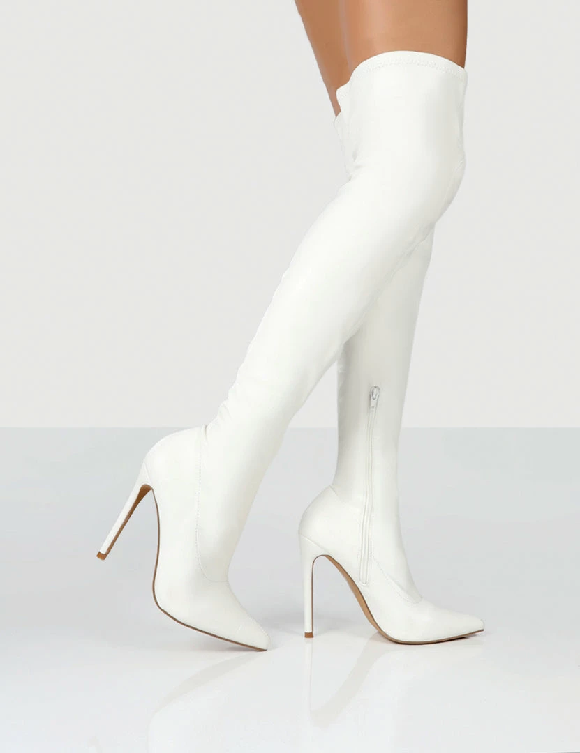 Every girl needs these ultimate thigh high boots! Make a statement in Confidence, featuring a high stiletto heel with a thigh high fit!