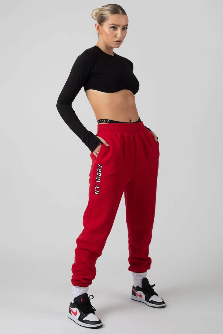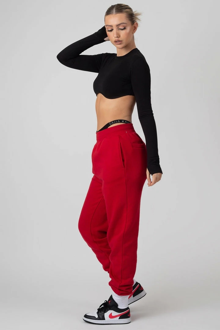 A long sleeve under bust detail super cropped t-shirt in black with thumb hole details.