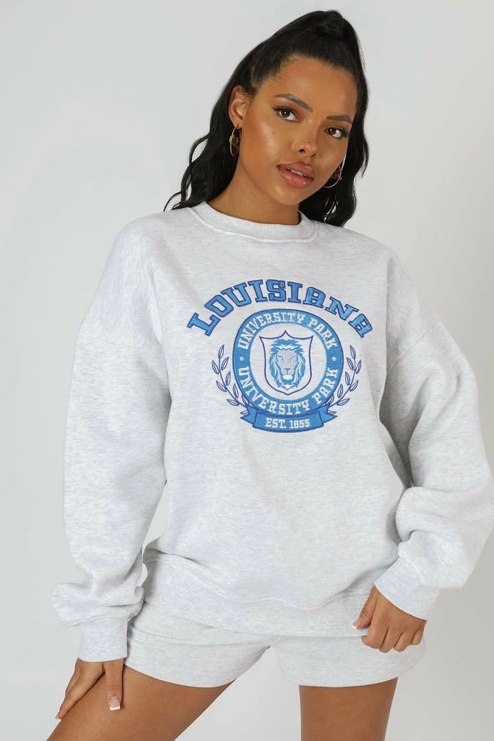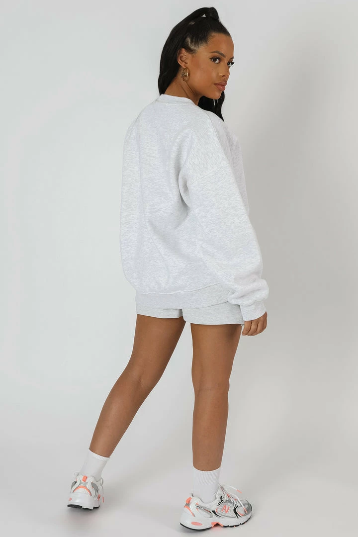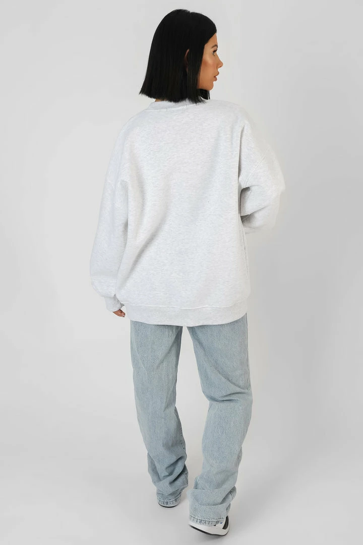 OVERSIZED FIT OATMEAL MARL SWEATSHIRT WITH BLUE EMBROIDERY