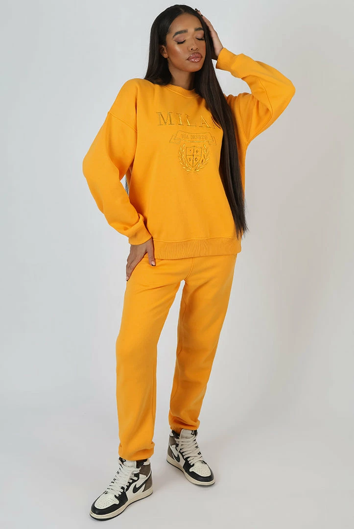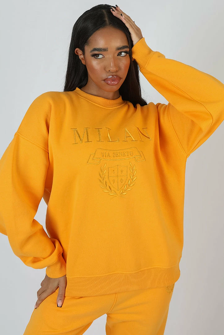 AN OVERSIZED FIT SWEATSHIRT IN MANGO WITH TONAL EMBROIDERY. PAIR WITH MILAN TONAL EMBROIDERED JOGGERS MANGO FOR THE ULTIMATE SET.