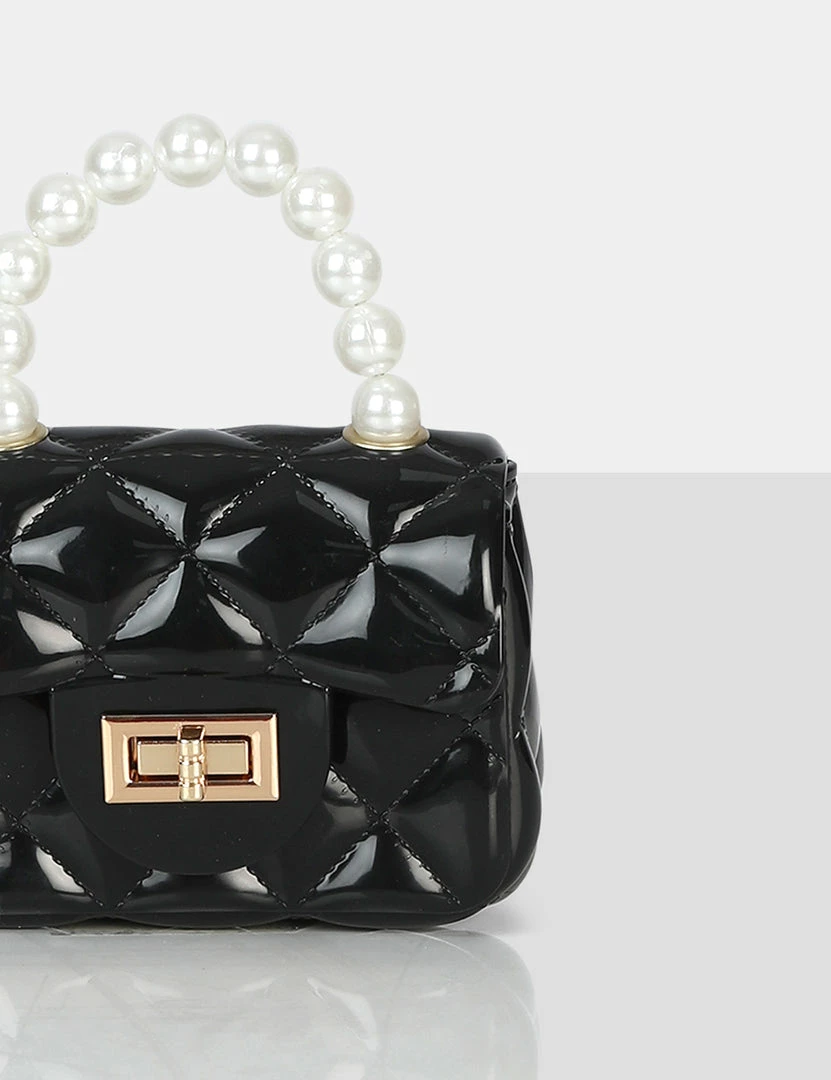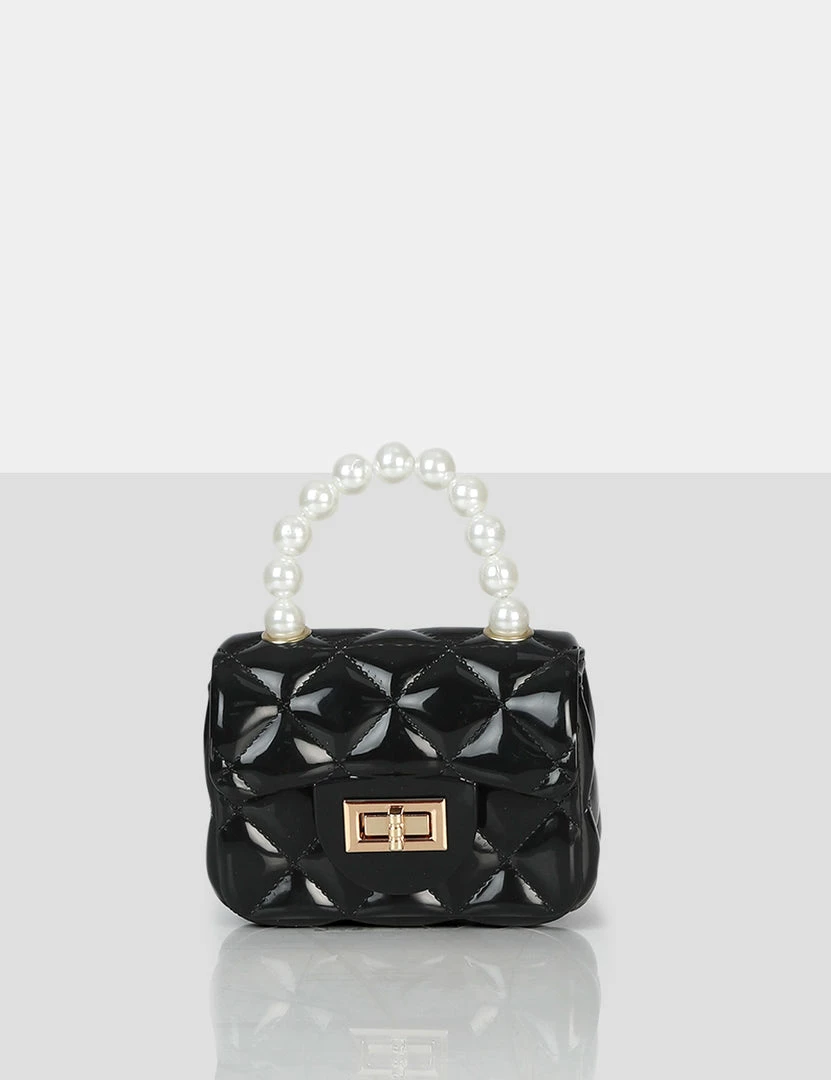 Out out never looked so good boo! You asked and we delivered…again! Iddy features in our latest handbag drop and will elevate your looks. Featuring a stunning pearl inspired detail strap this black patent mini bag is a SS22 must-have!