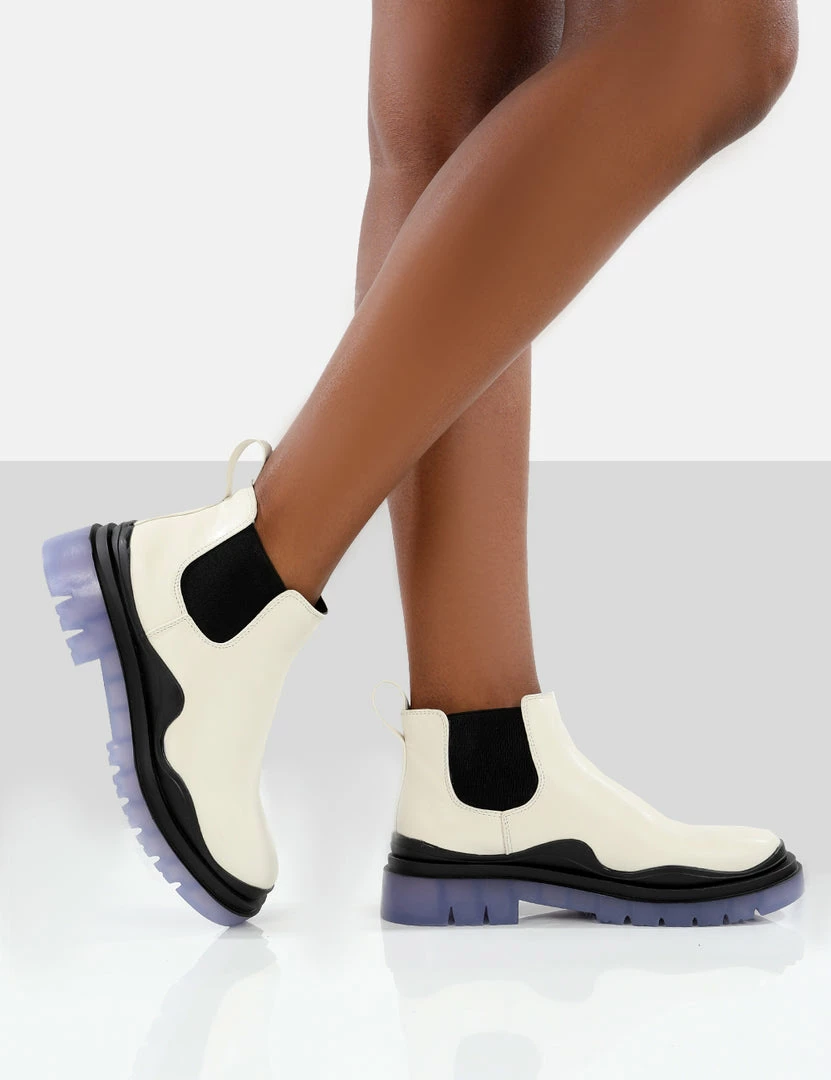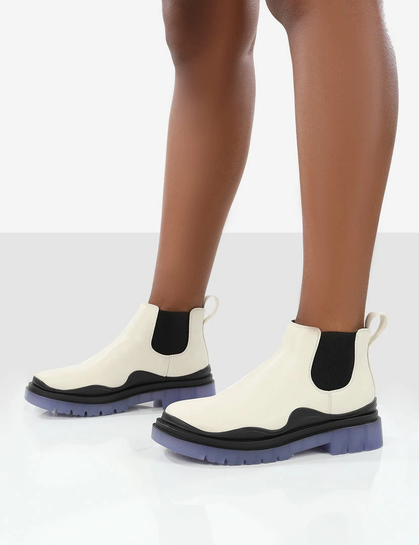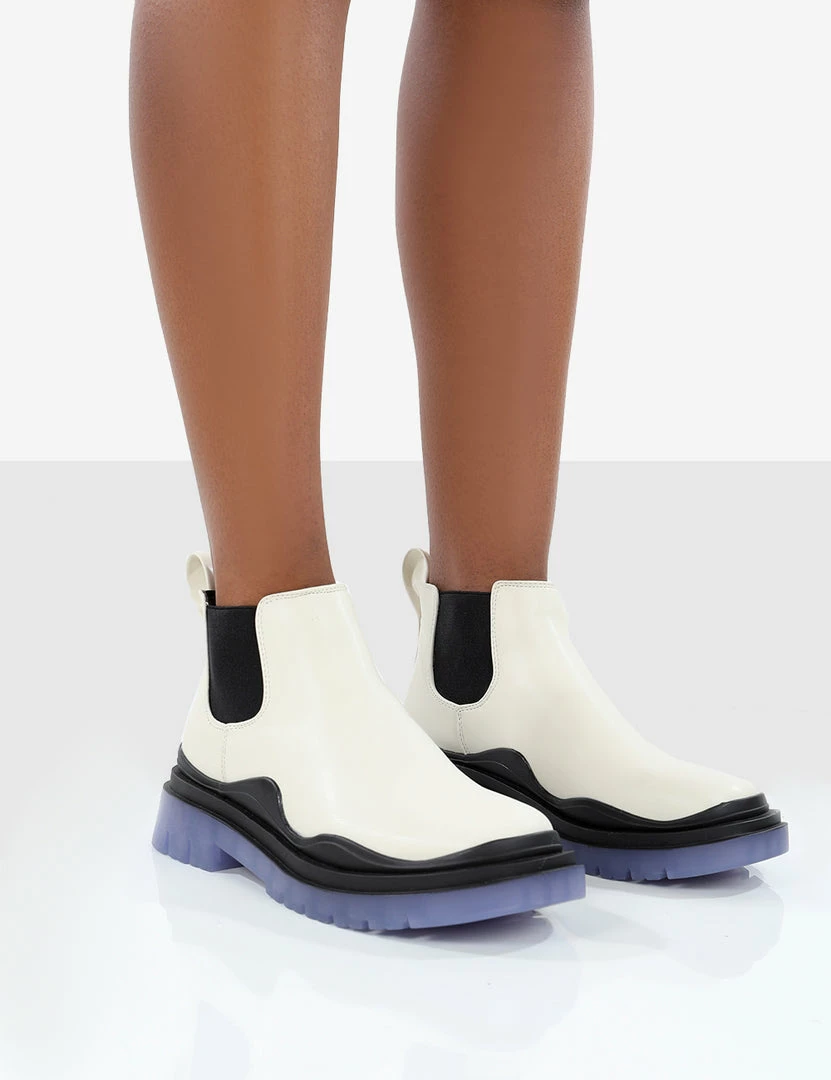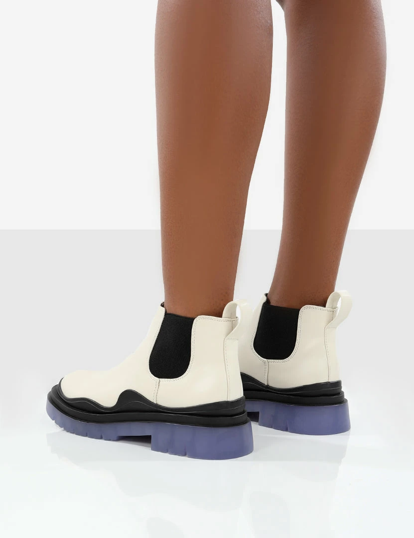 Looking for the boot to take you from summer to autumn? Our new chelsea boot, Myth features a chunky rubber blue sole.