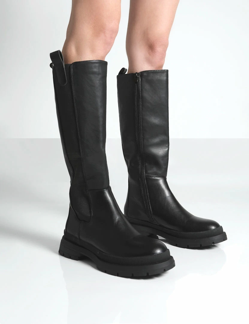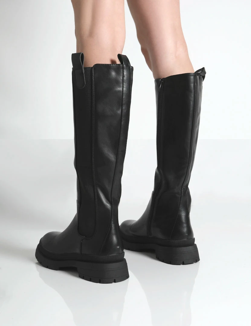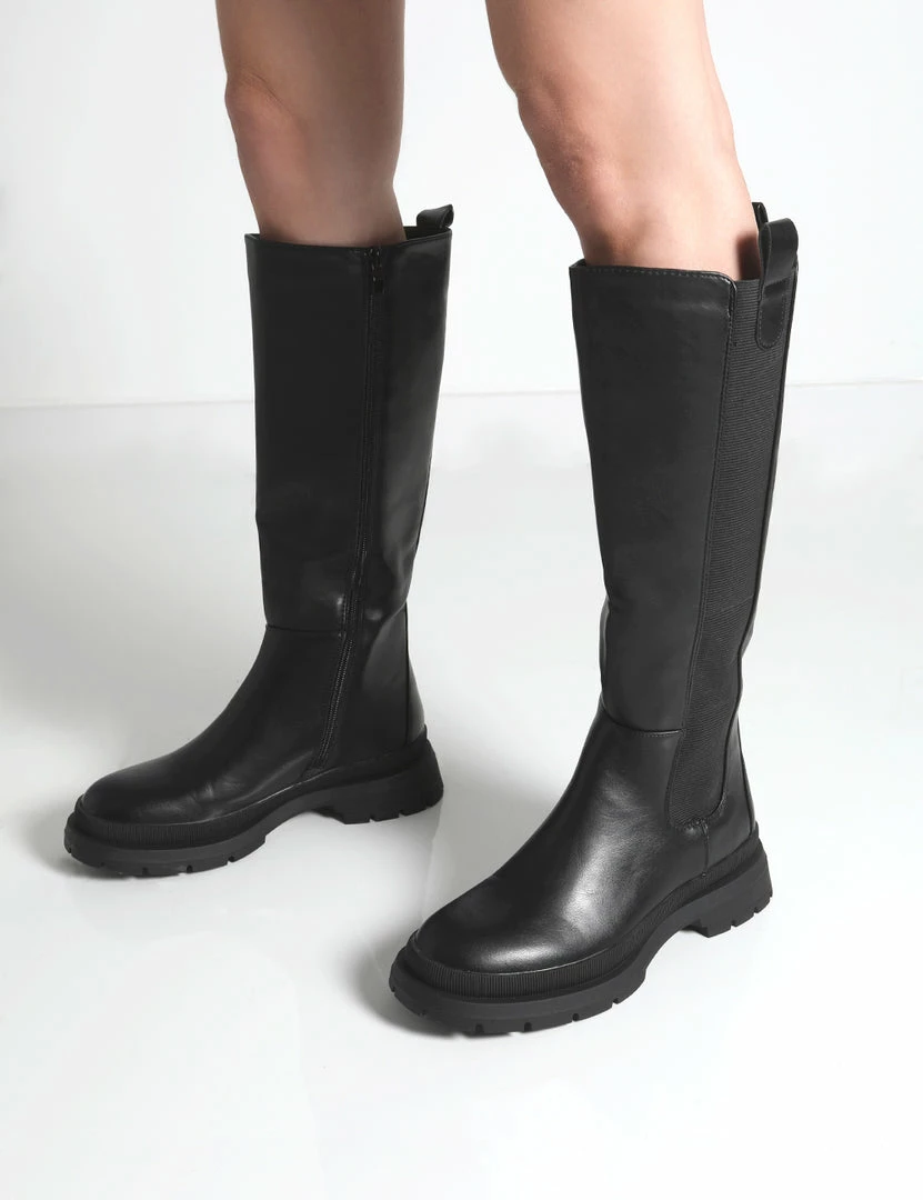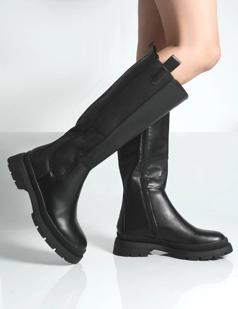 It’s time to meet your new AW21 faves- Balya. A gorgeous pair of black knee high boots guaranteed to elevate your new season looks. Long boots are this seasons must-have and a great shoedrobe staple. We’re styling Balya with a black ribbed bodycon dress, a neutral trench coat and our fave mini handbag. Finish off your look with gold jewellery and you’re good to go boo. CUTE!