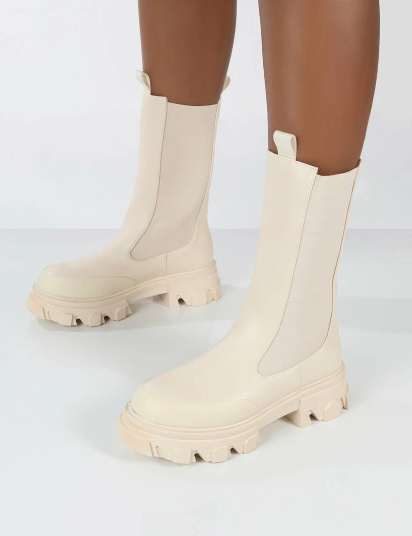 Boston features a chunky sole, side panel detailing and a calf high length. Team these with your outfit of the day to complete the look.