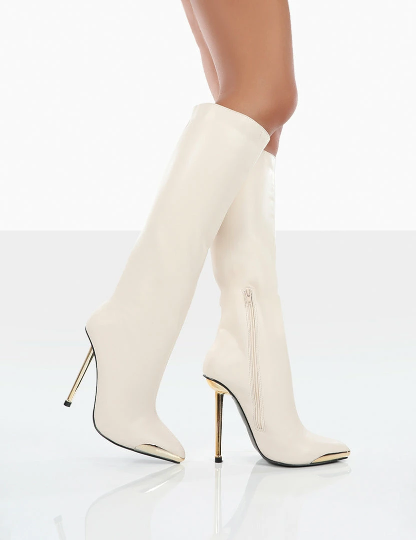 Tala is a stunning stiletto heel, knee high boot, that features a pointed toe with gold detailing. We are obsessed with these knee high boots and will be wearing them all year round! These blue long boots look amazing paired with a cream blazer dress and a matching mini handbag. Add Tala to your shoedrobe today…