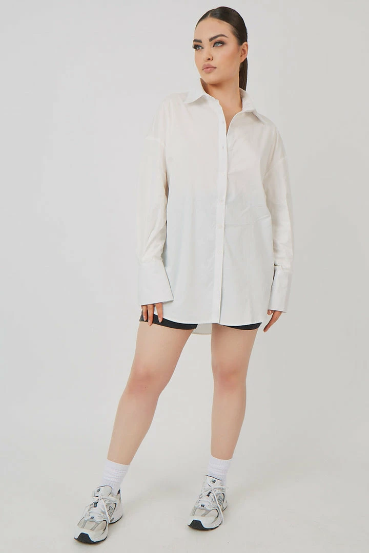 A must have updated basic for this Autumn with this white oversized fit shirt in poplin.