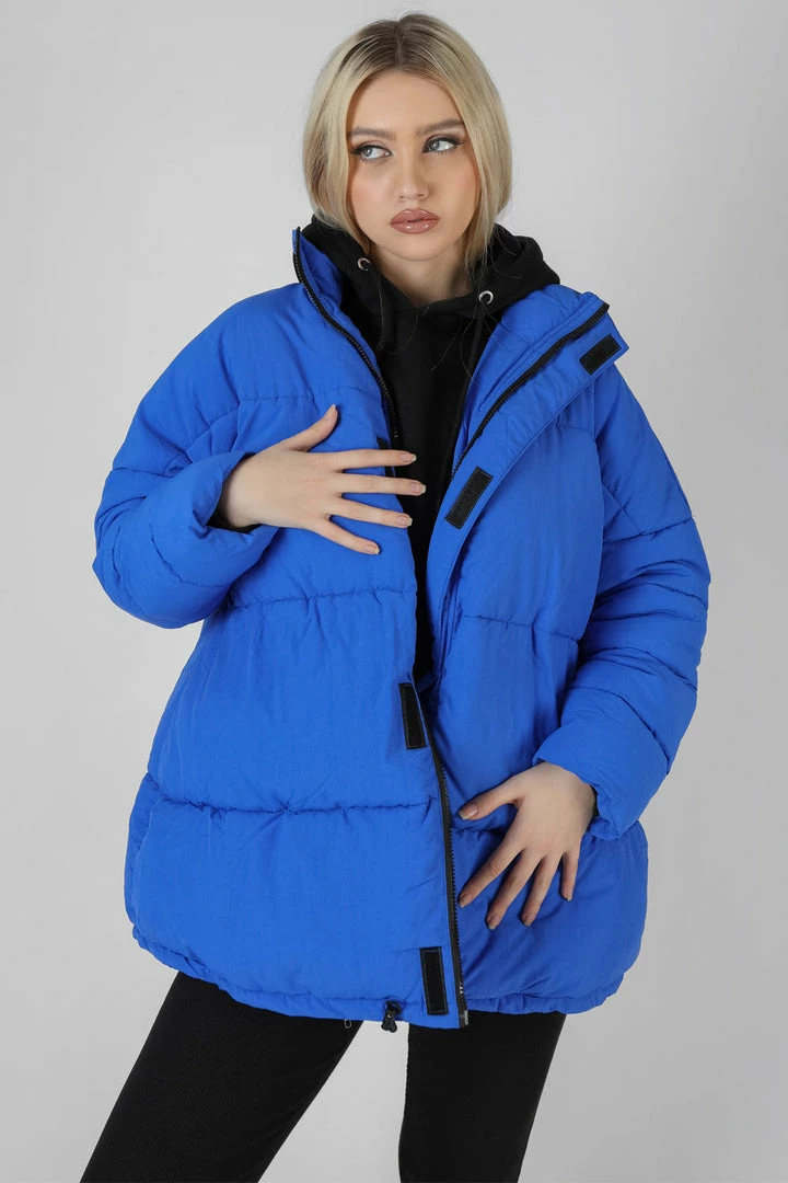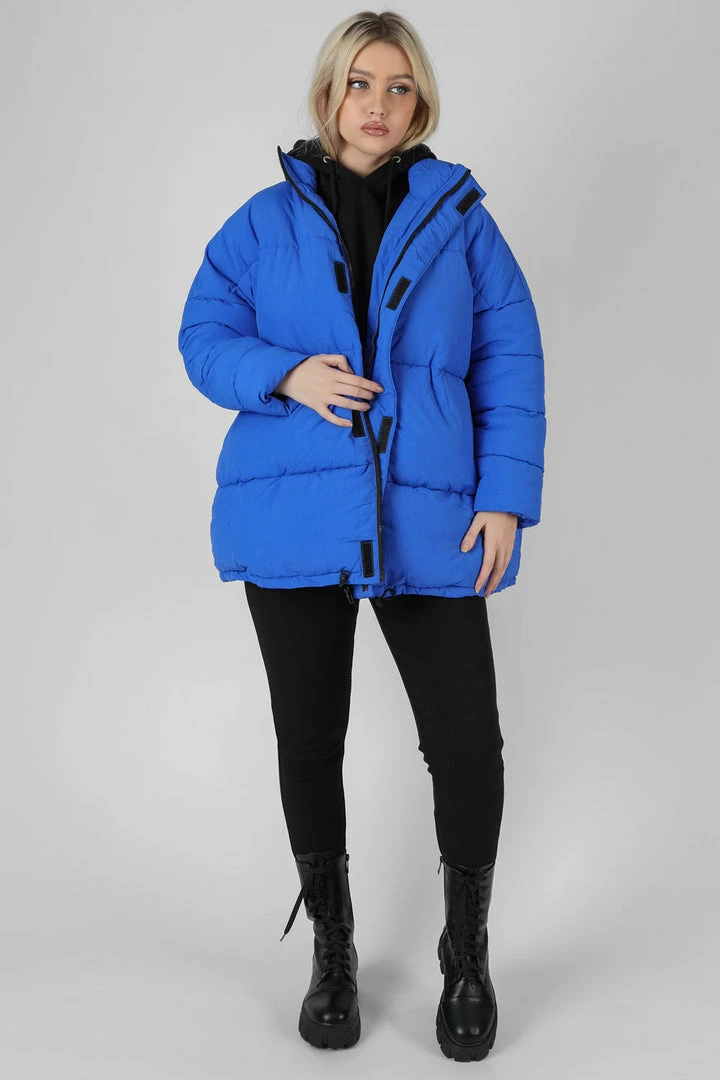 Stay warm this Autumn with this padded trapeze puffer jacket featuring a zip fastening and front pockets in blue.