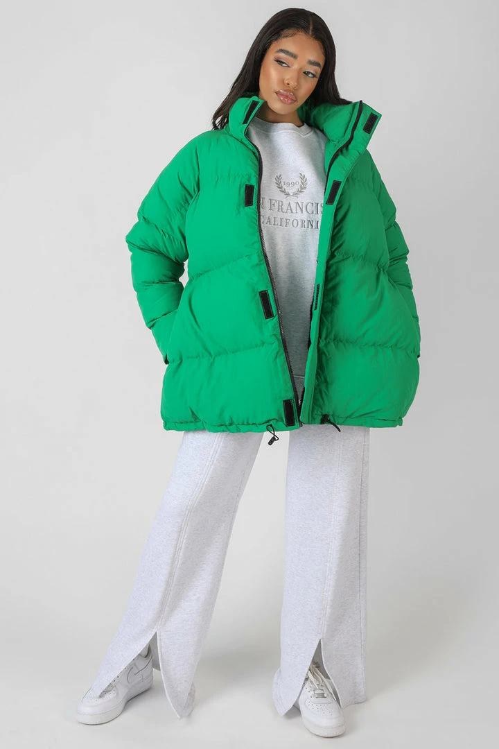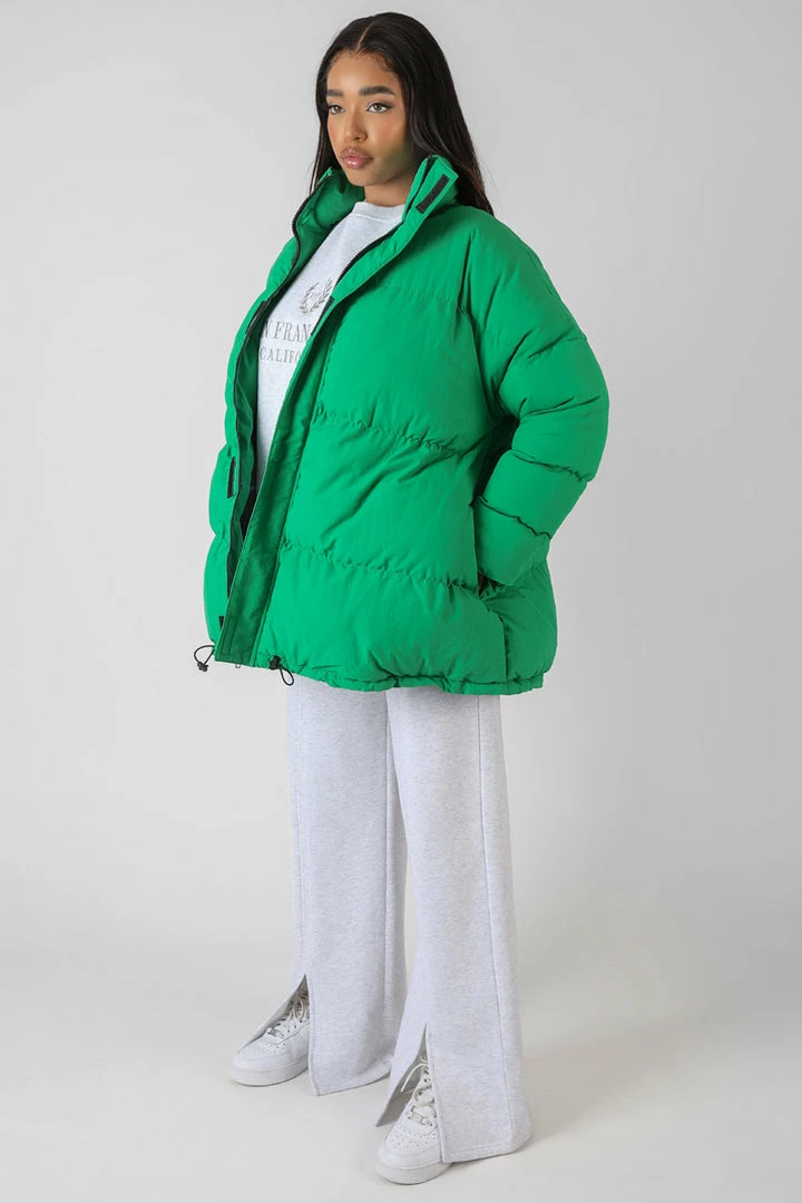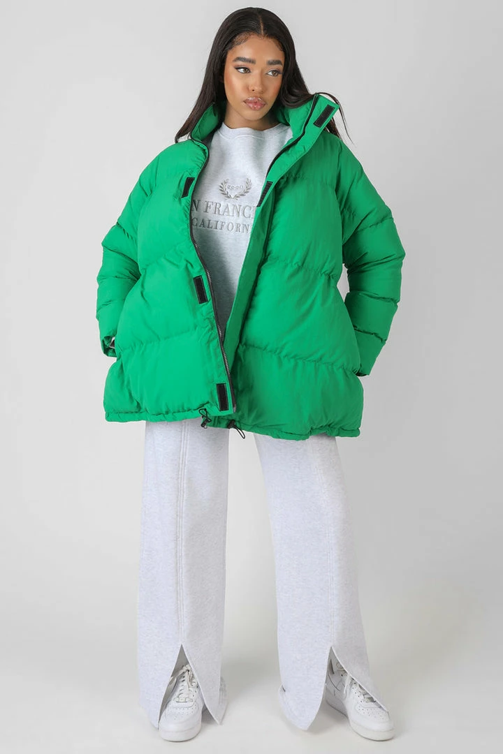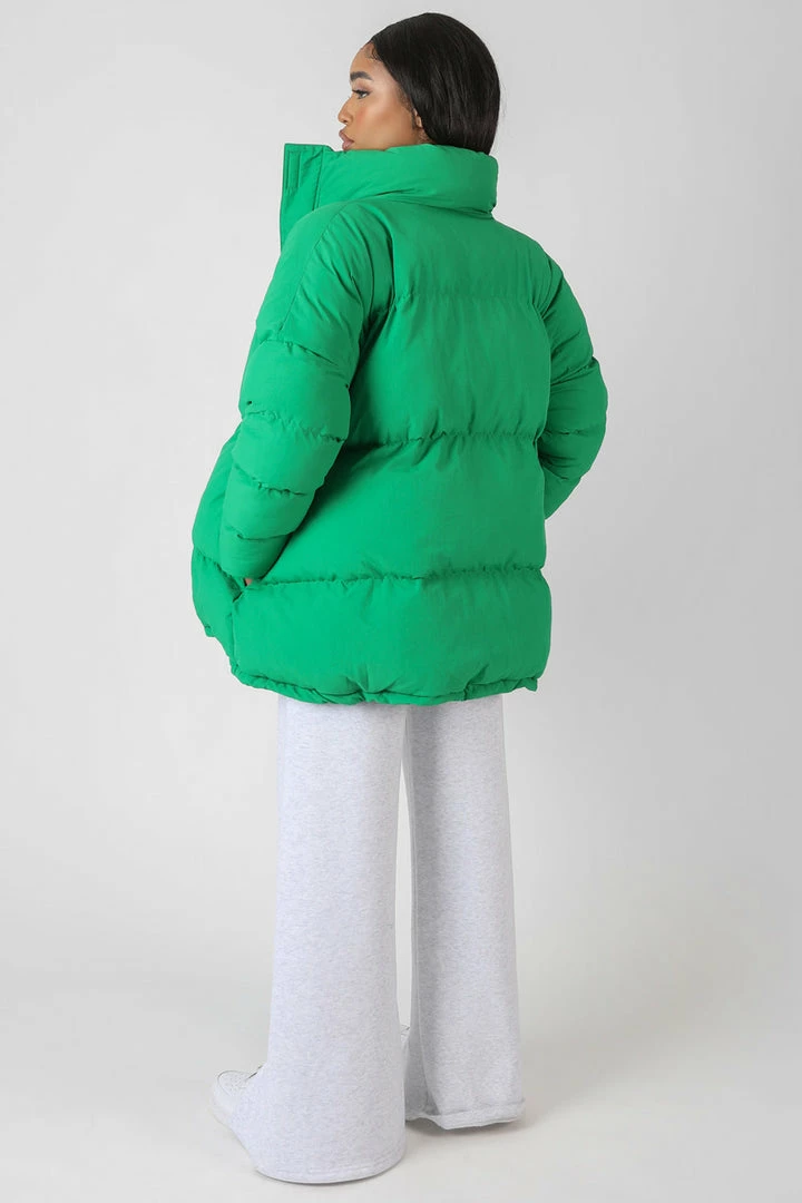 Stay warm this Autumn with this padded trapeze puffer jacket featuring a zip fastening and front pockets in this seasons hottest colour, green.