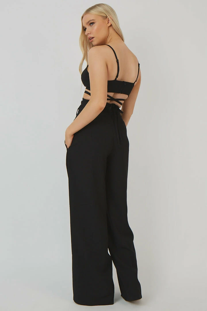 The ultimate crop top bralet to dress up or down, featuring a strappy waist detail with a zip at the back in black. Pair this with the matching OBI BELT SUIT for the perfect outfit.