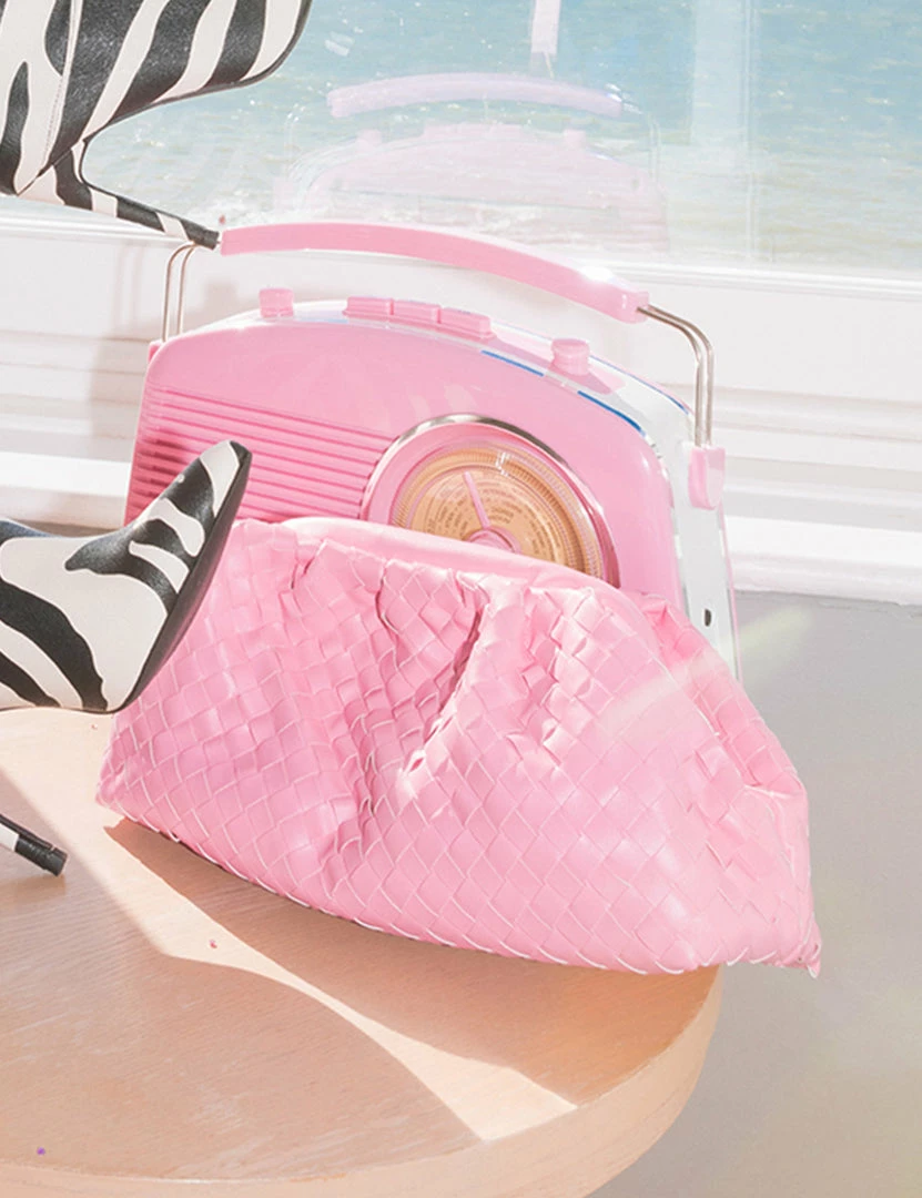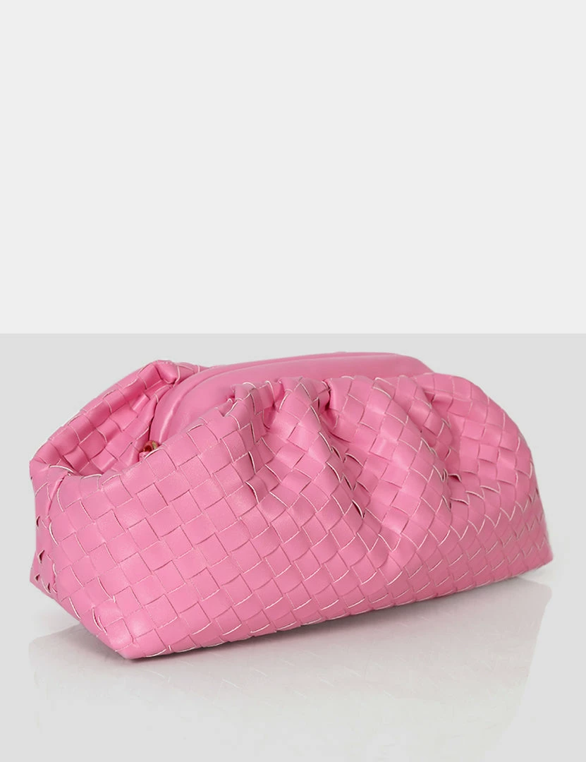 Project is a stunning weave detail clutch bag that will take your looks from 0 to 100 real quick. We are obsessed with this clutch bag in pink and you will be too! Pink handbags are a SS22 essential, shop the full Tara Maynard edit here…