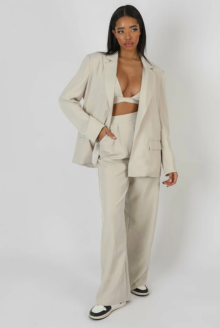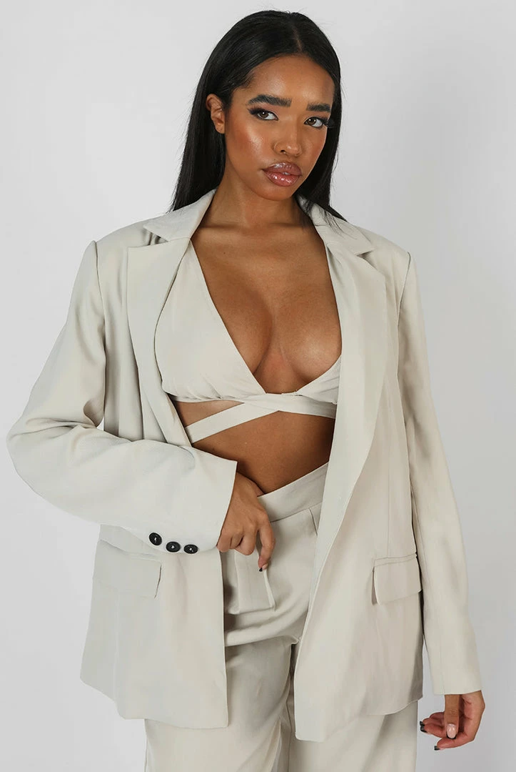 A must have blazer featuring a relaxed fit in stone.
